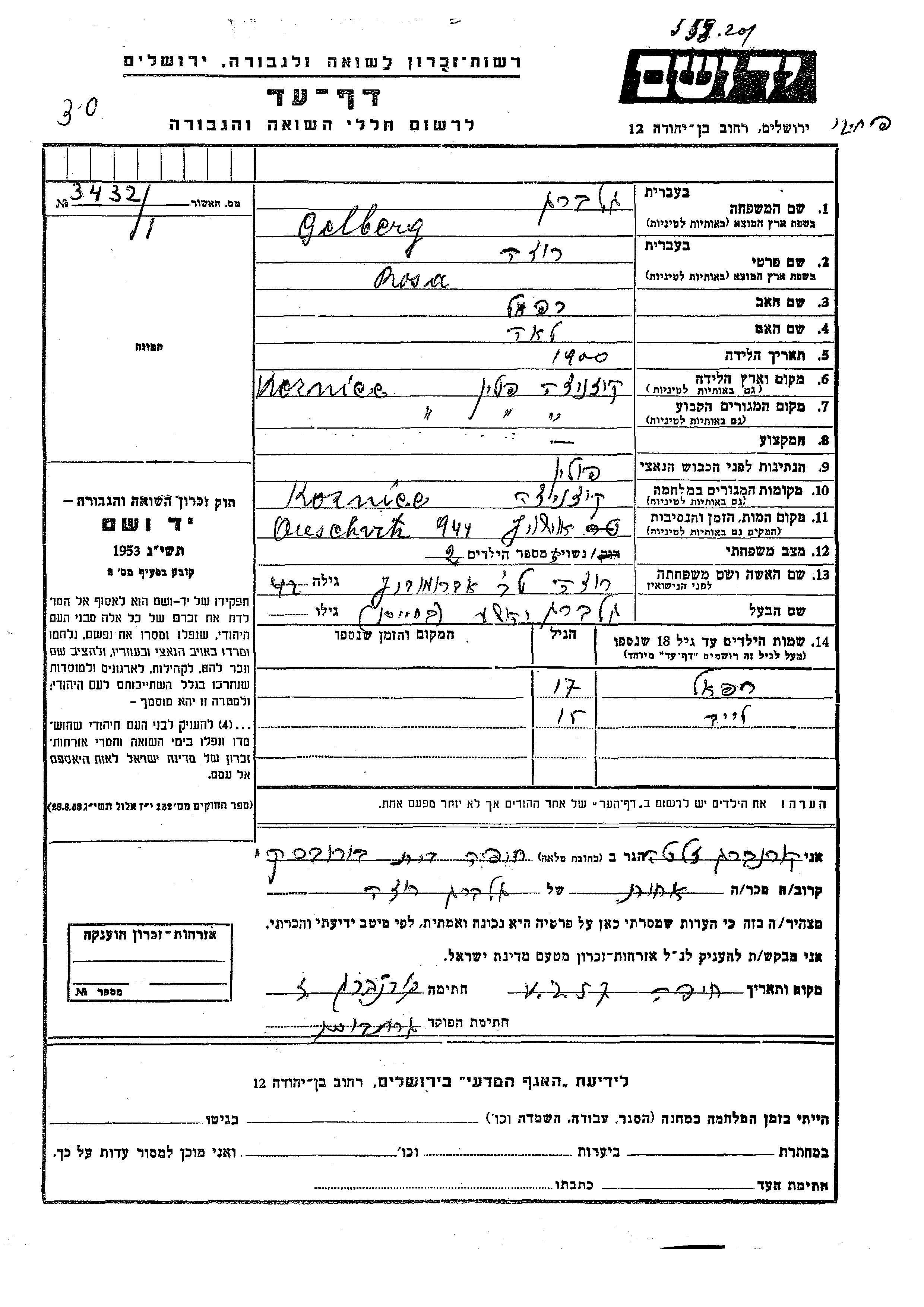 Yad Vashem - Pages of Testimony Names Memorial Collection