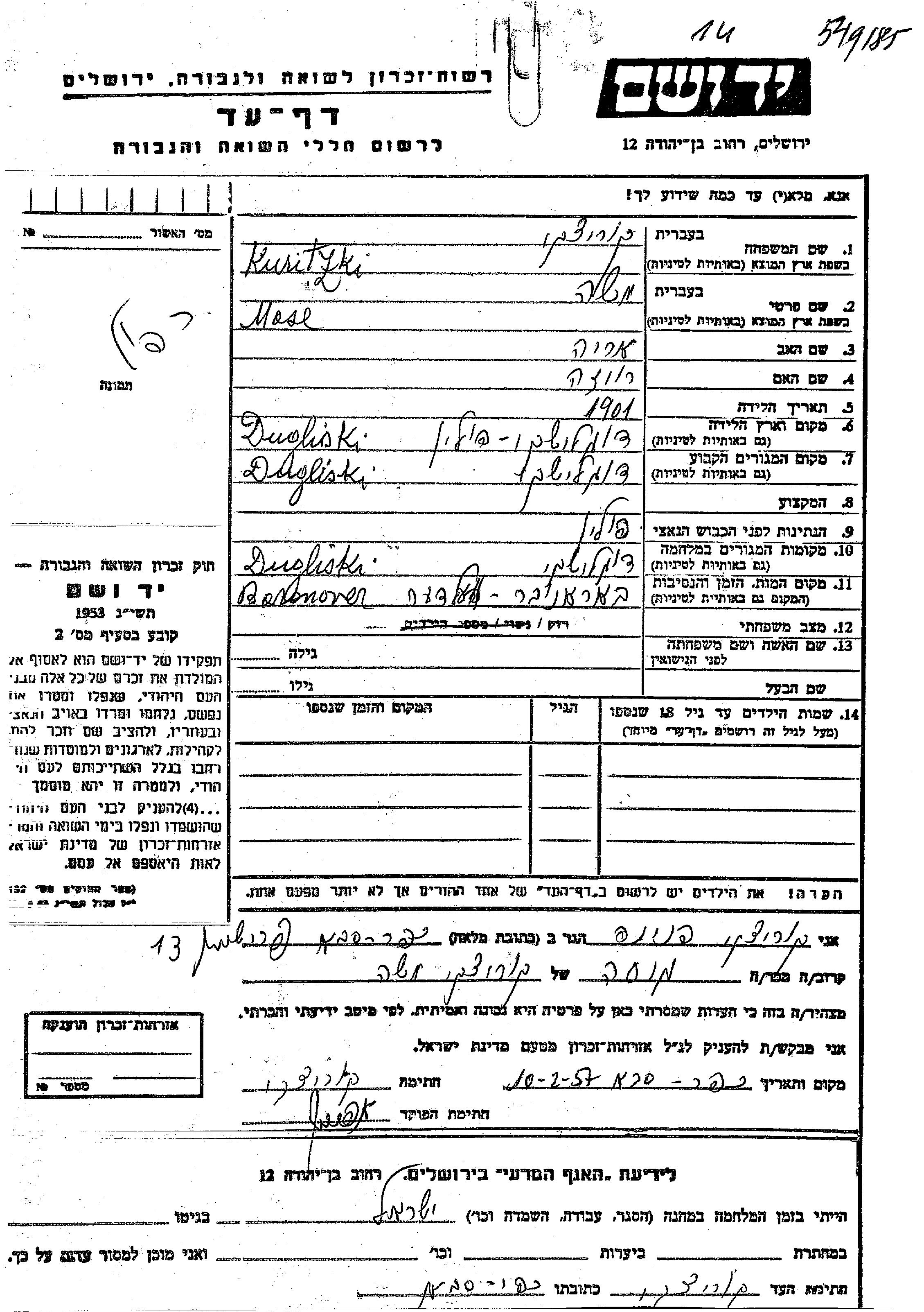 Yad Vashem - Pages of Testimony Names Memorial Collection