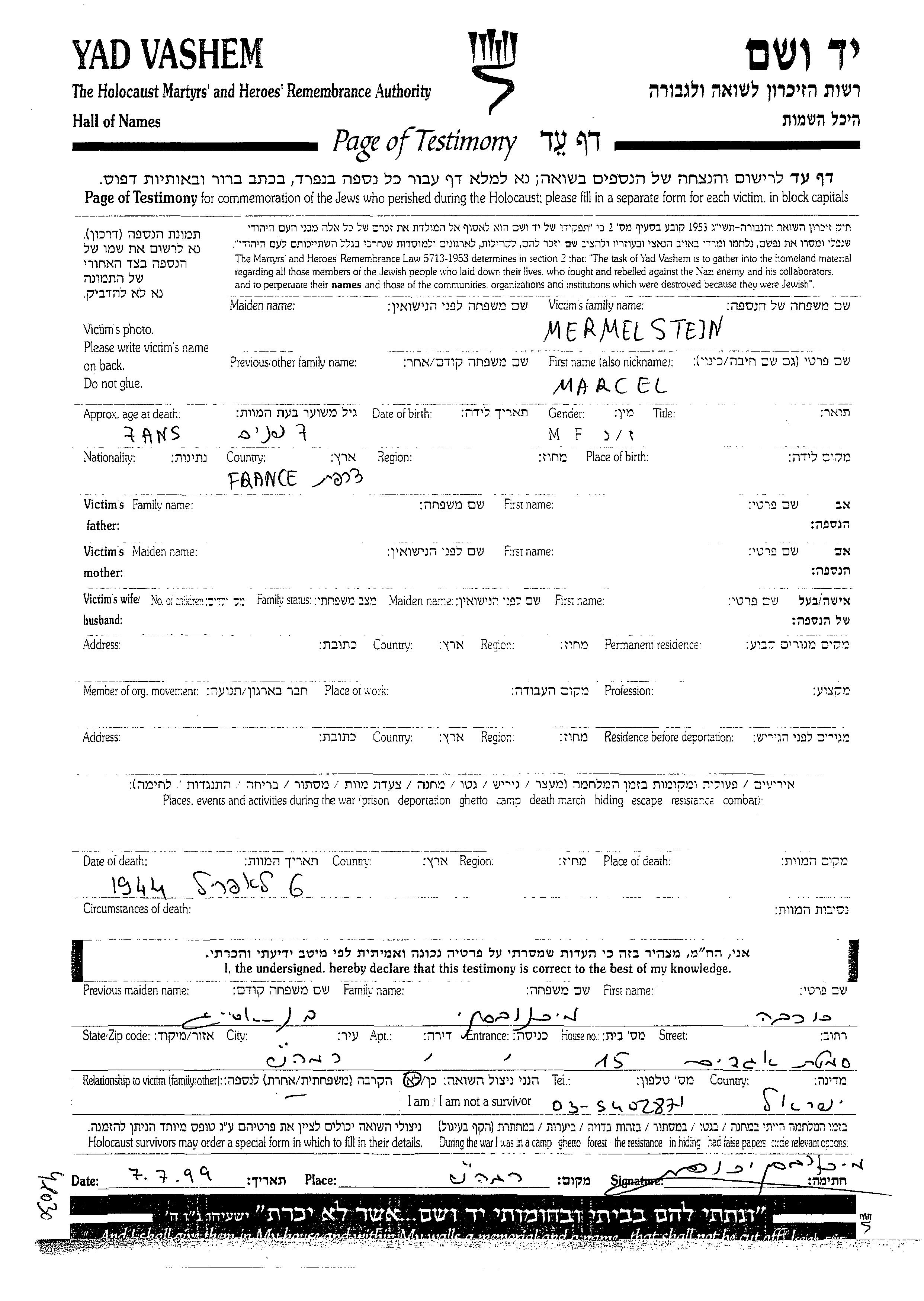 Marcel Mermelstein est né à France.