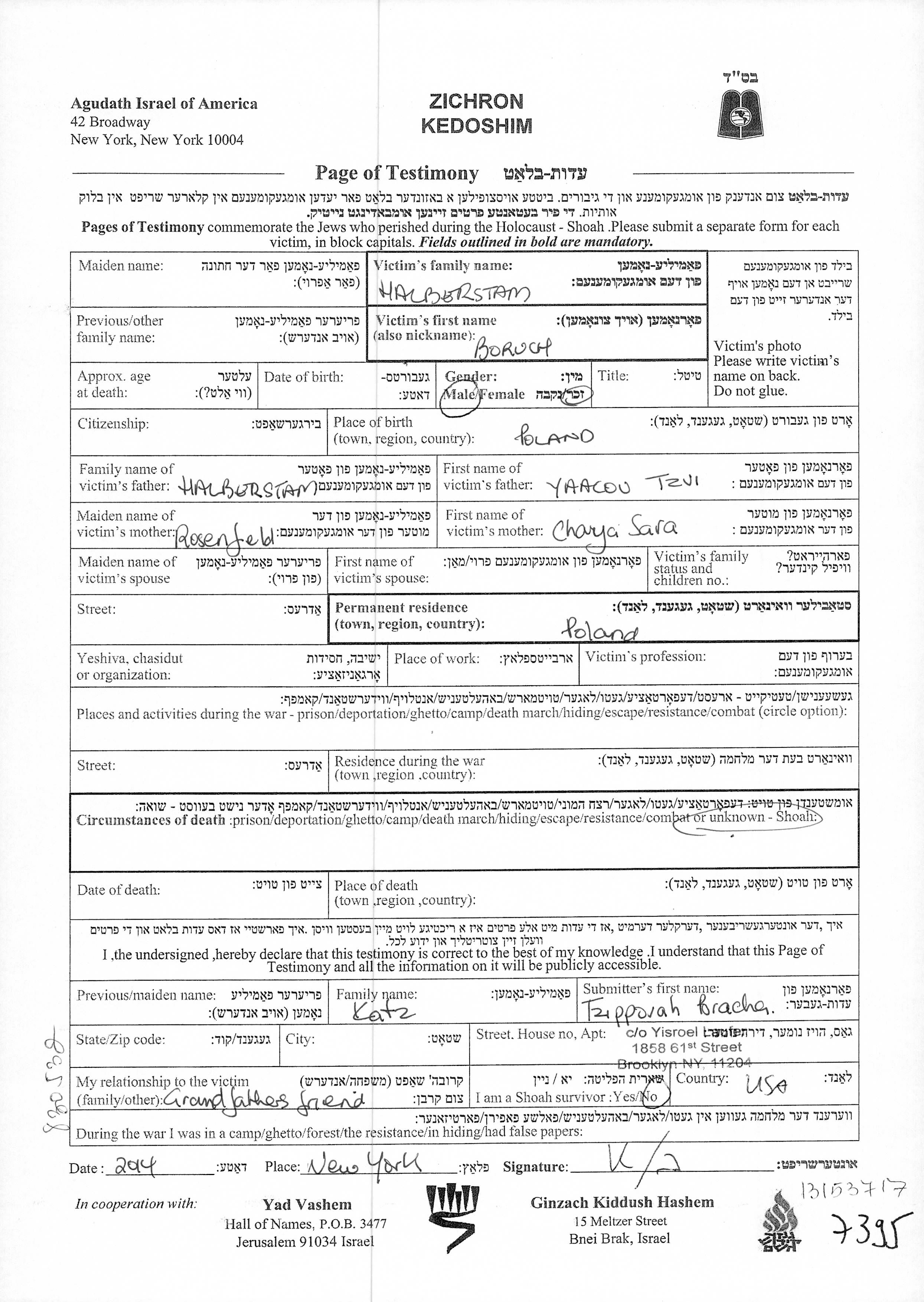 Yad Vashem - Pages of Testimony Names Memorial Collection