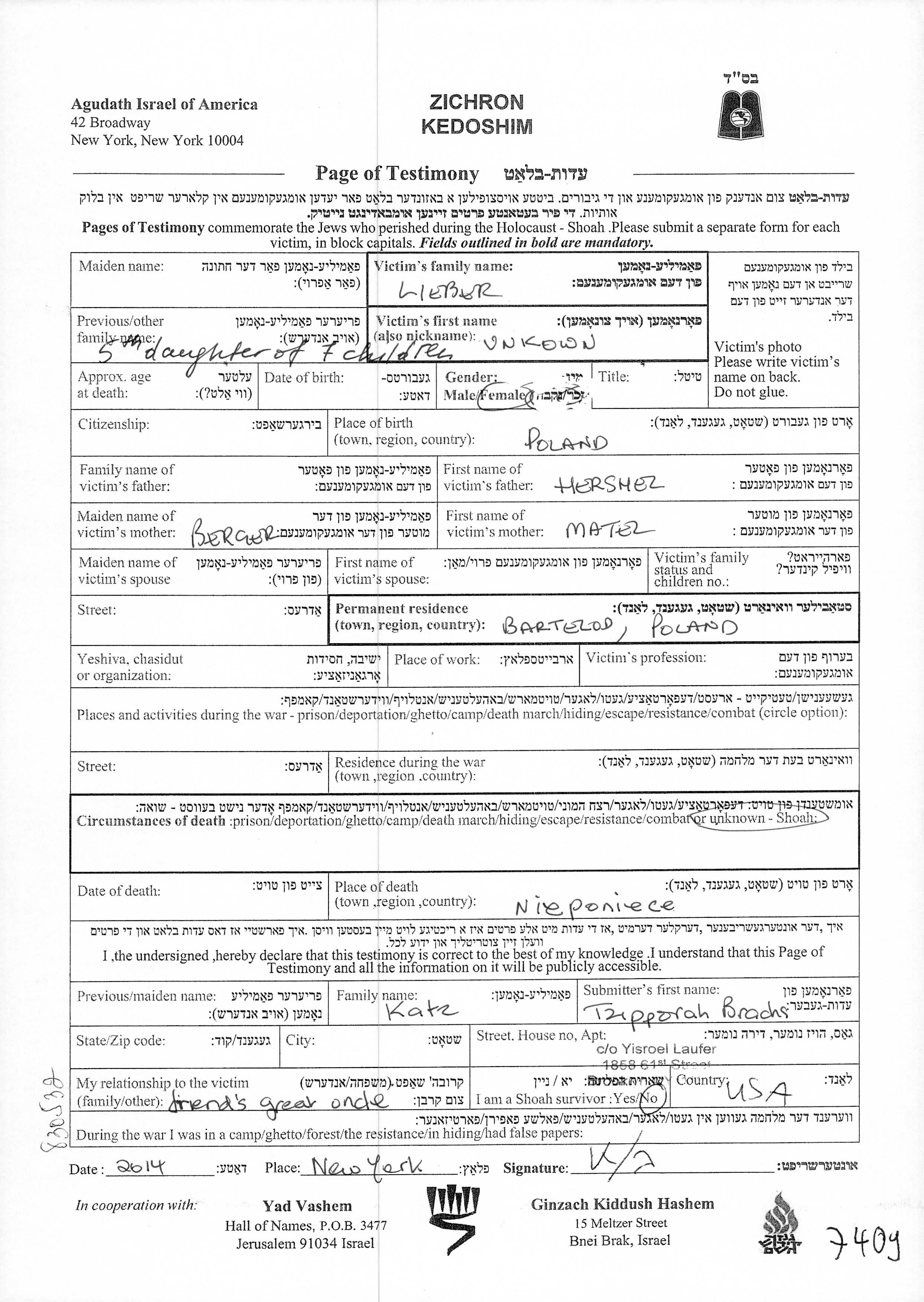 Yad Vashem - Pages of Testimony Names Memorial Collection