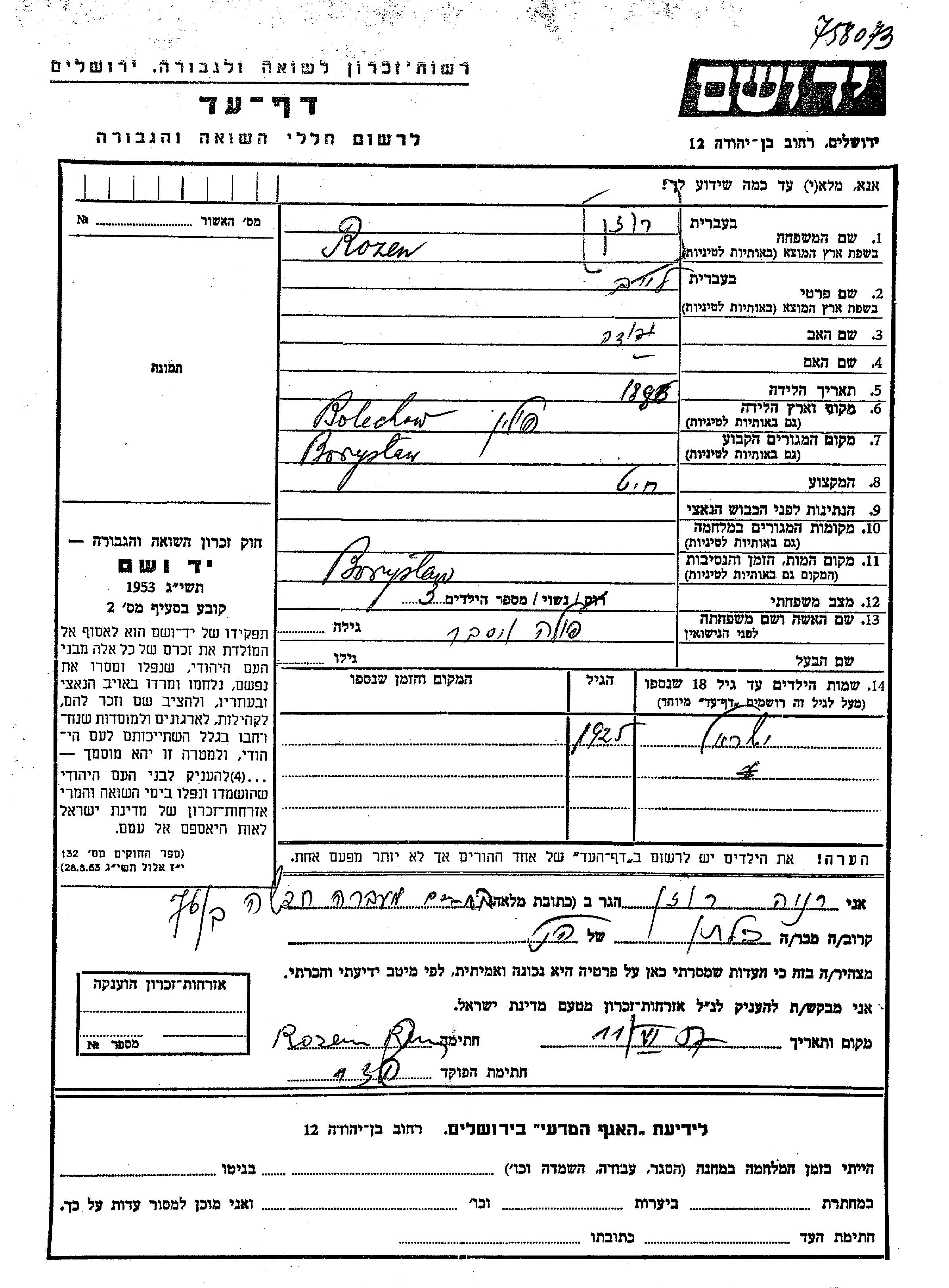 Rozen Leib 1885 endroit inconnu, Feuille de témoignage
