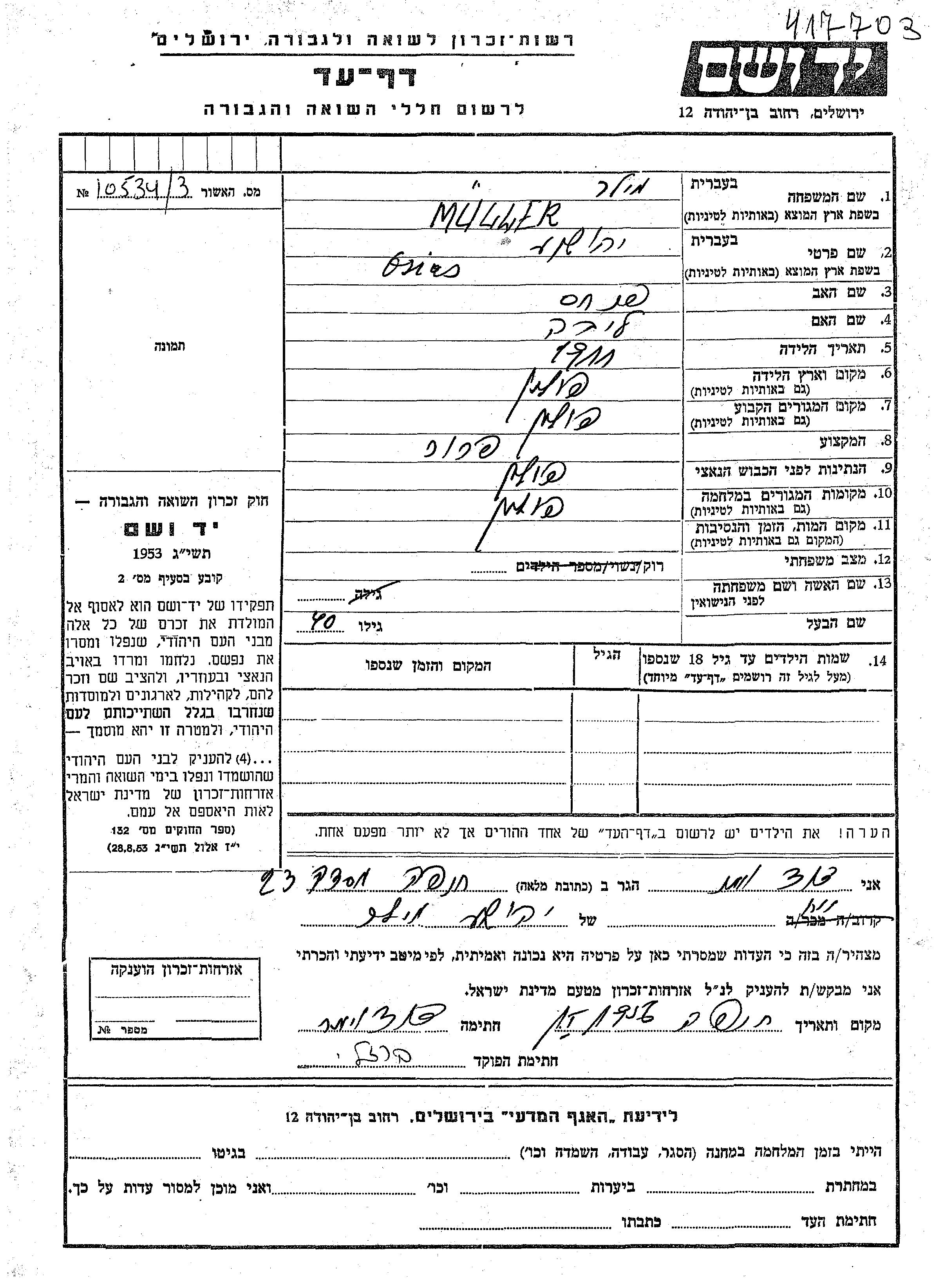 Yad Vashem - Pages of Testimony Names Memorial Collection
