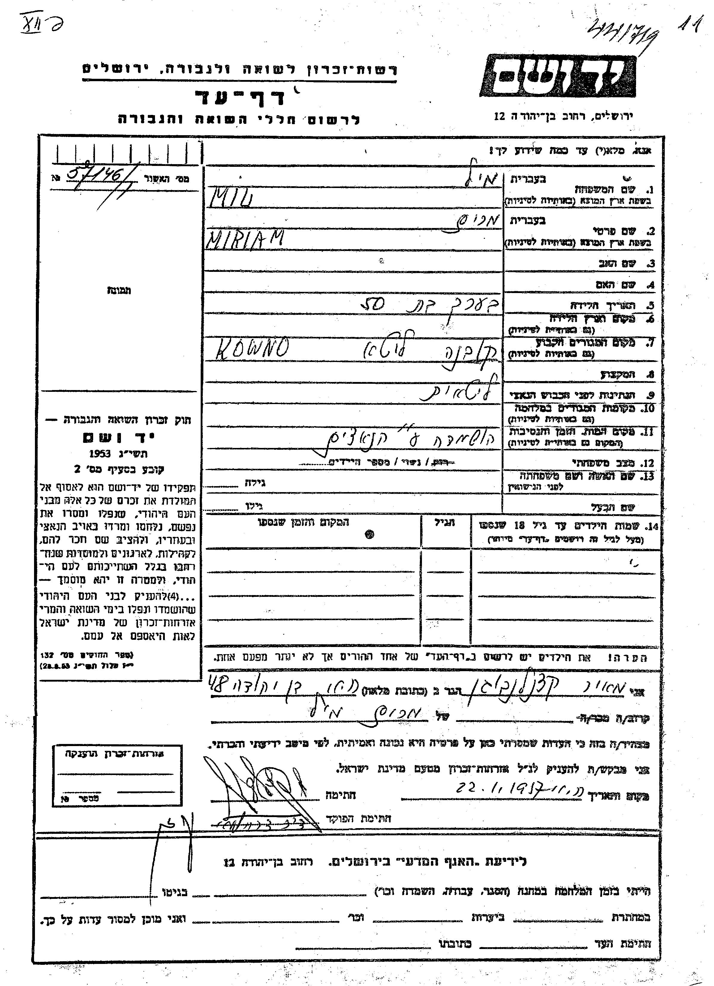 Mil Miriam Kowno, Lituanie Feuille de témoignage