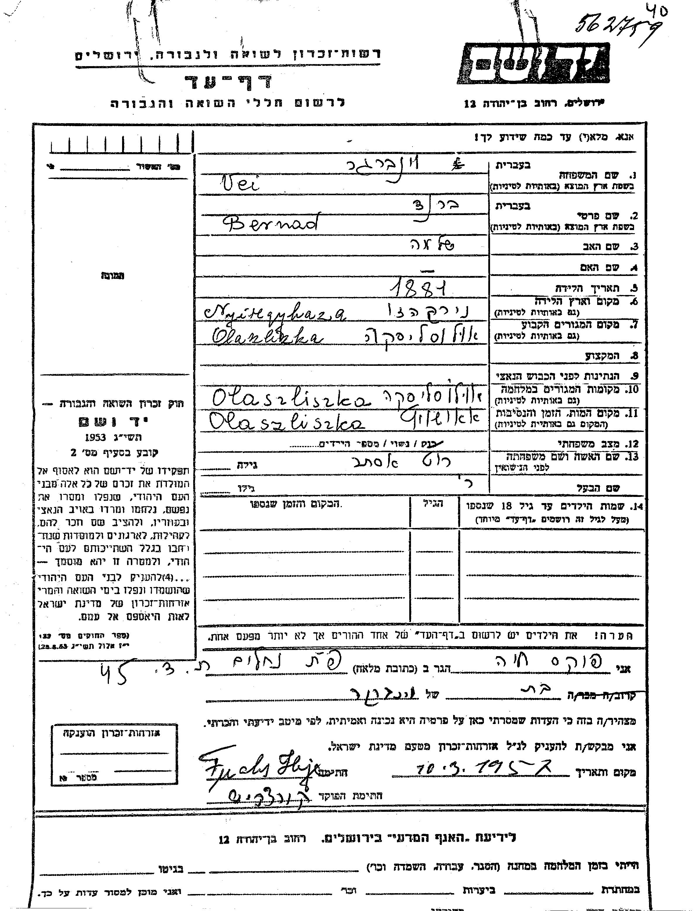 Bernad a été assassiné pendant la Shoah. Lieu de la mort: Auschwitz, Pologne.