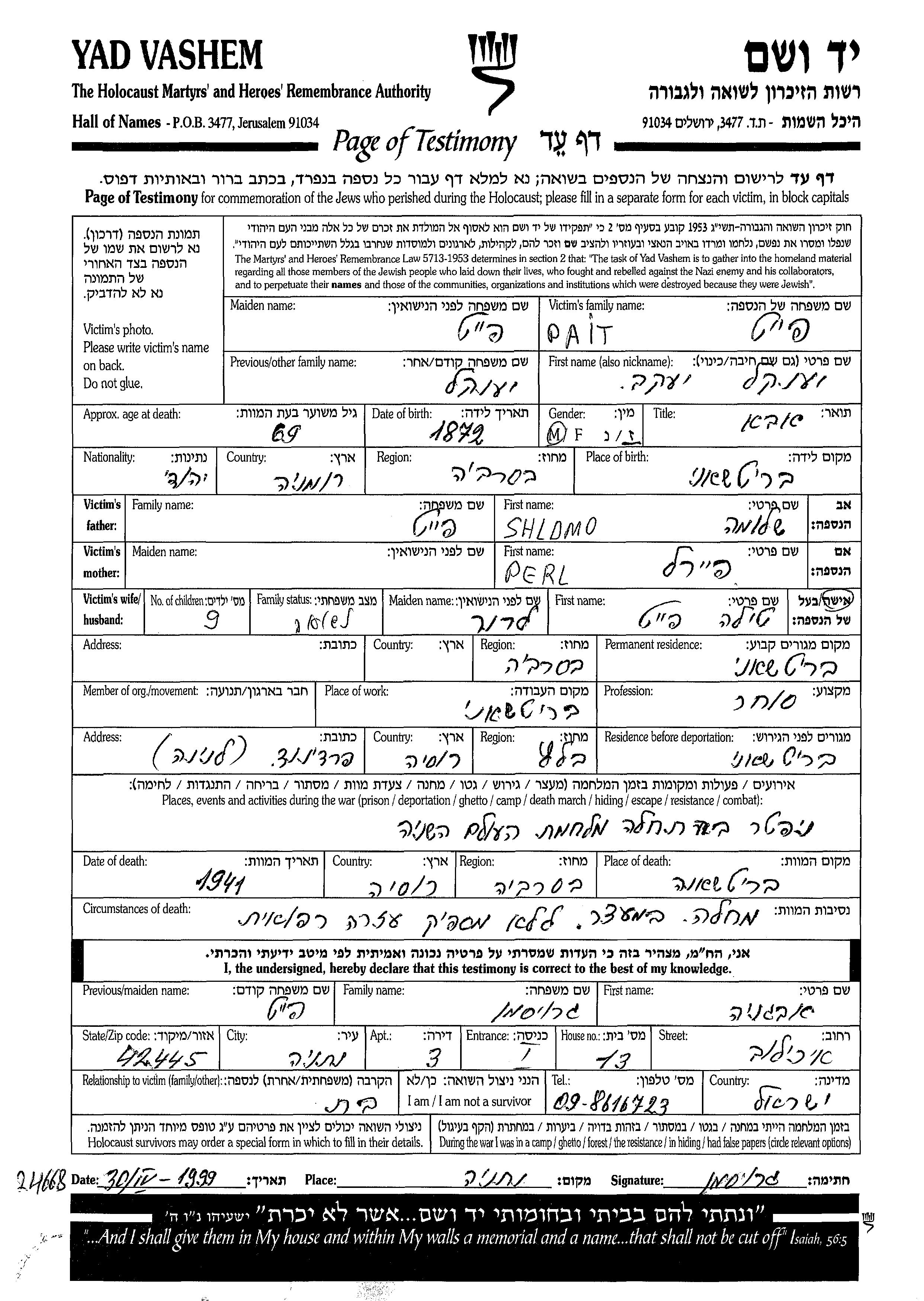 Yad Vashem - Pages of Testimony Names Memorial Collection