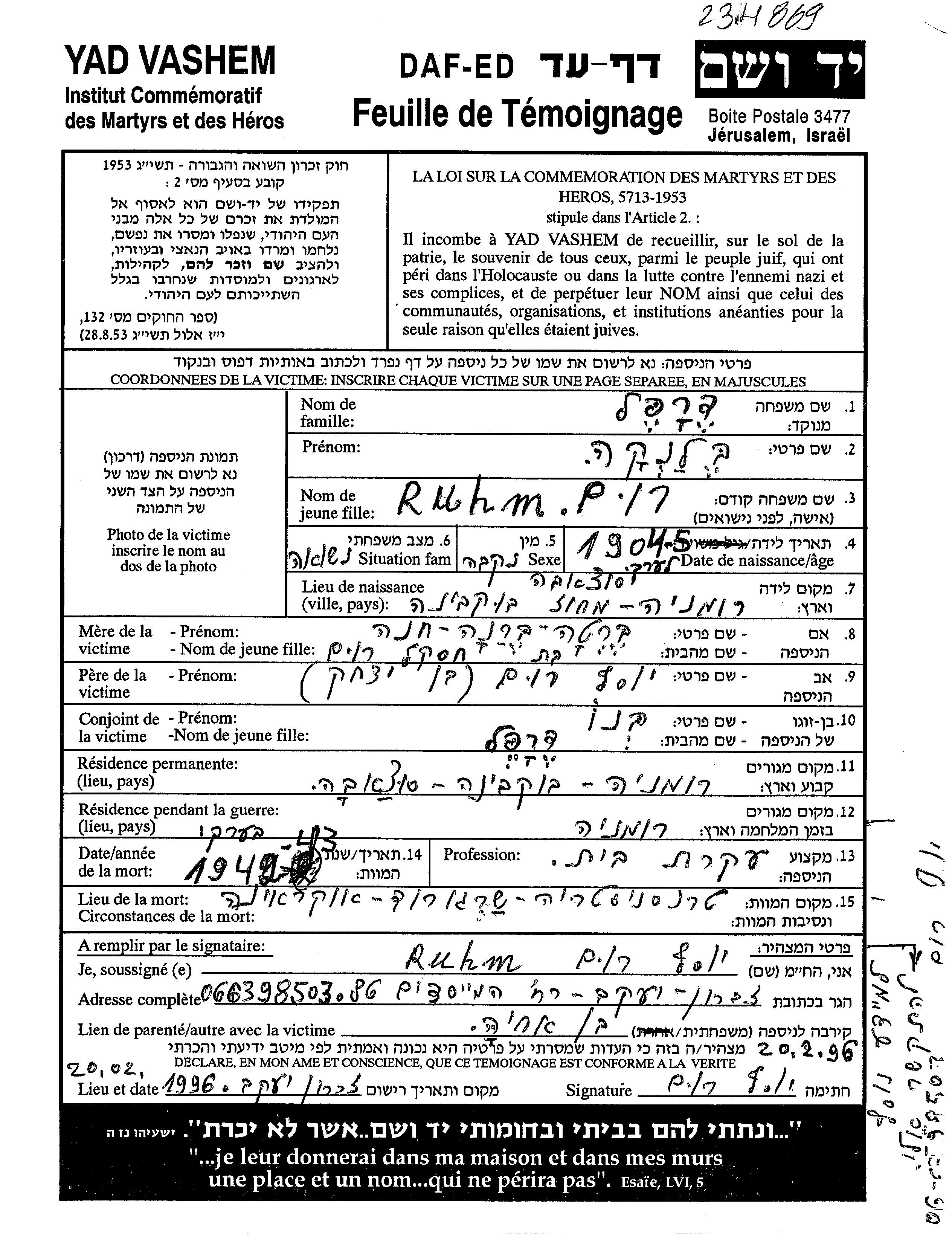 Drapel | Blanka | Suceava, Roumanie | Liste des Juifs assassinés compilés dans les Livres de Souvenir (Yzkor books) |