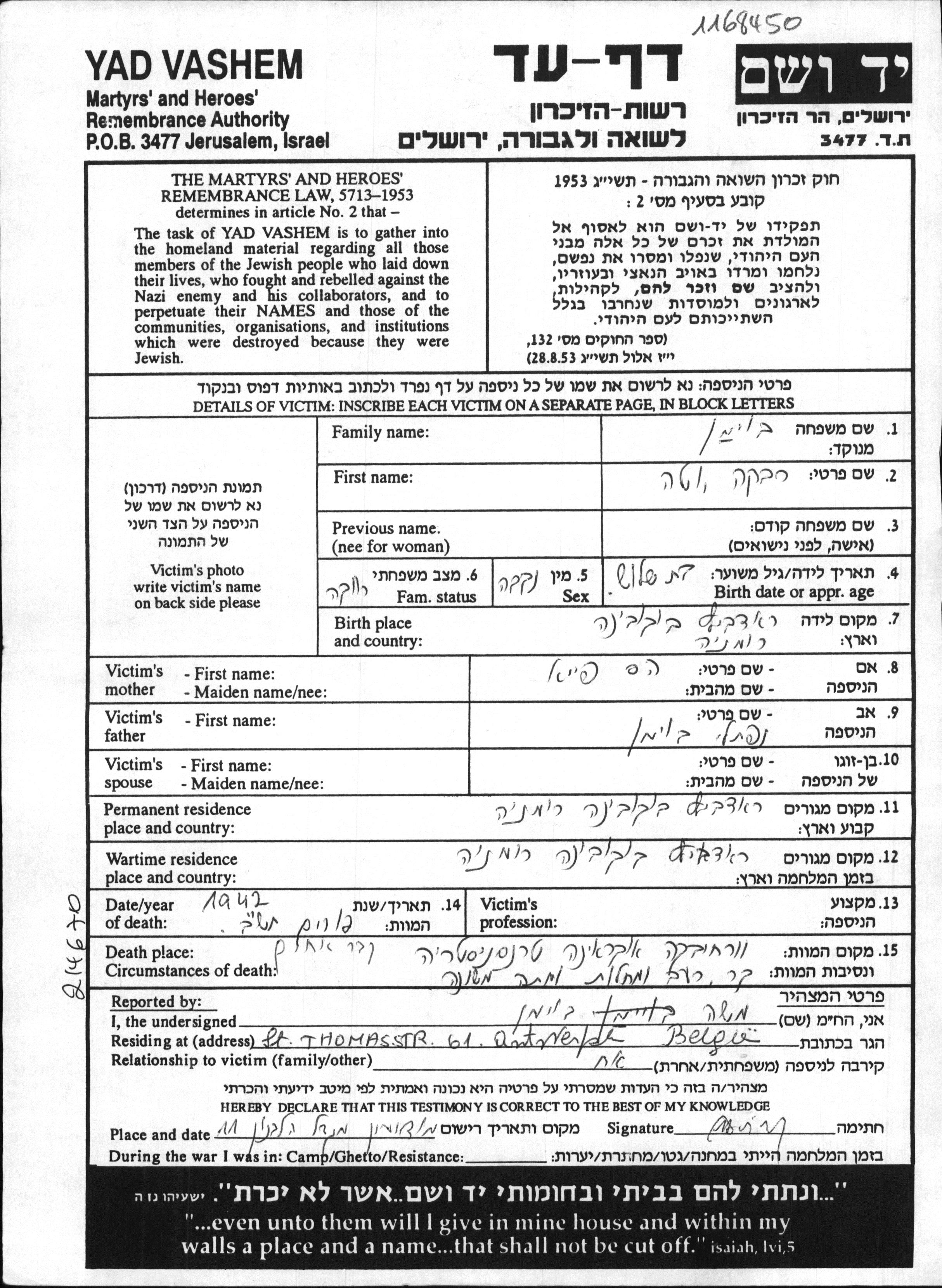 Yad Vashem - Pages of Testimony Names Memorial Collection