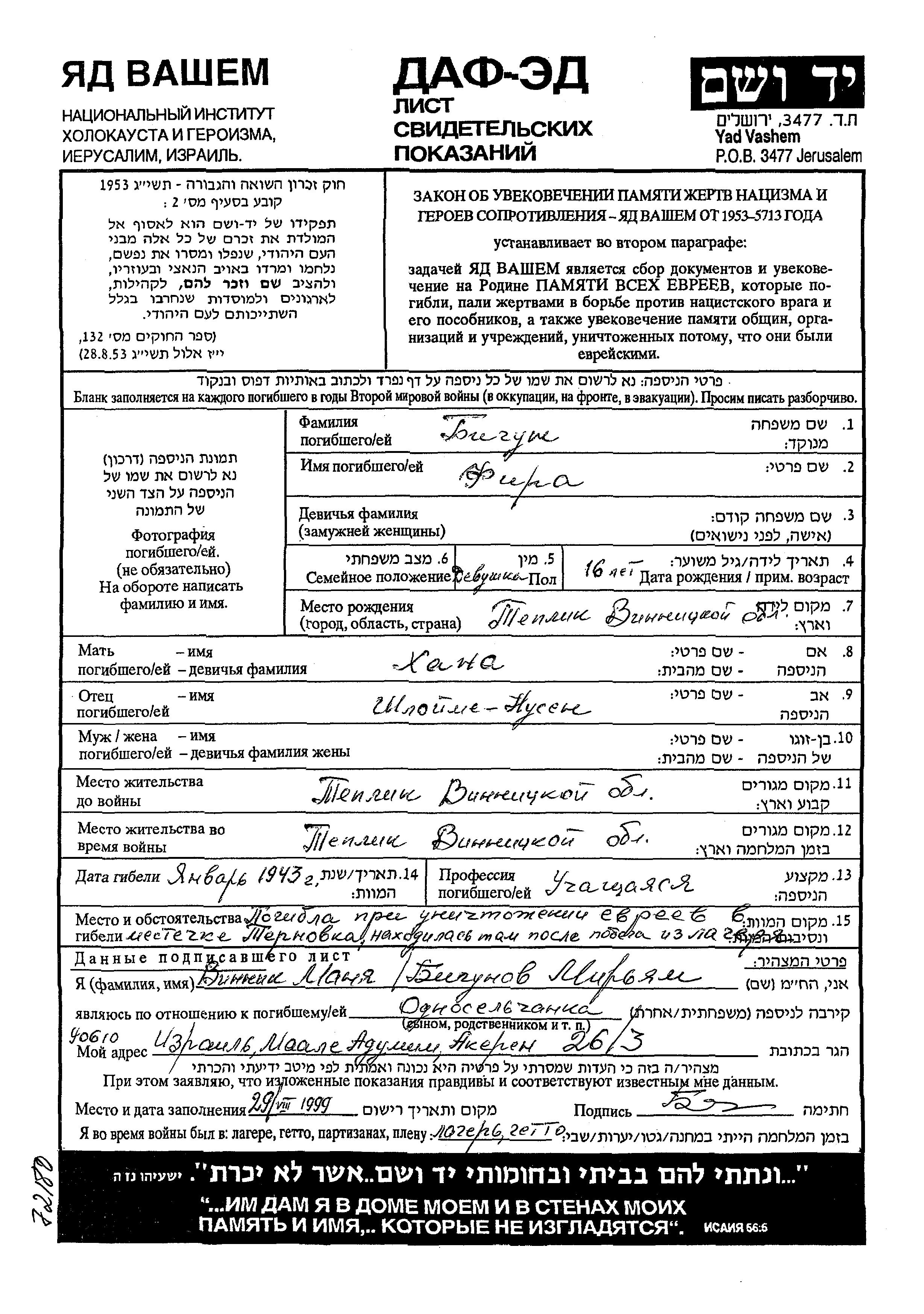 Yad Vashem - Pages of Testimony Names Memorial Collection