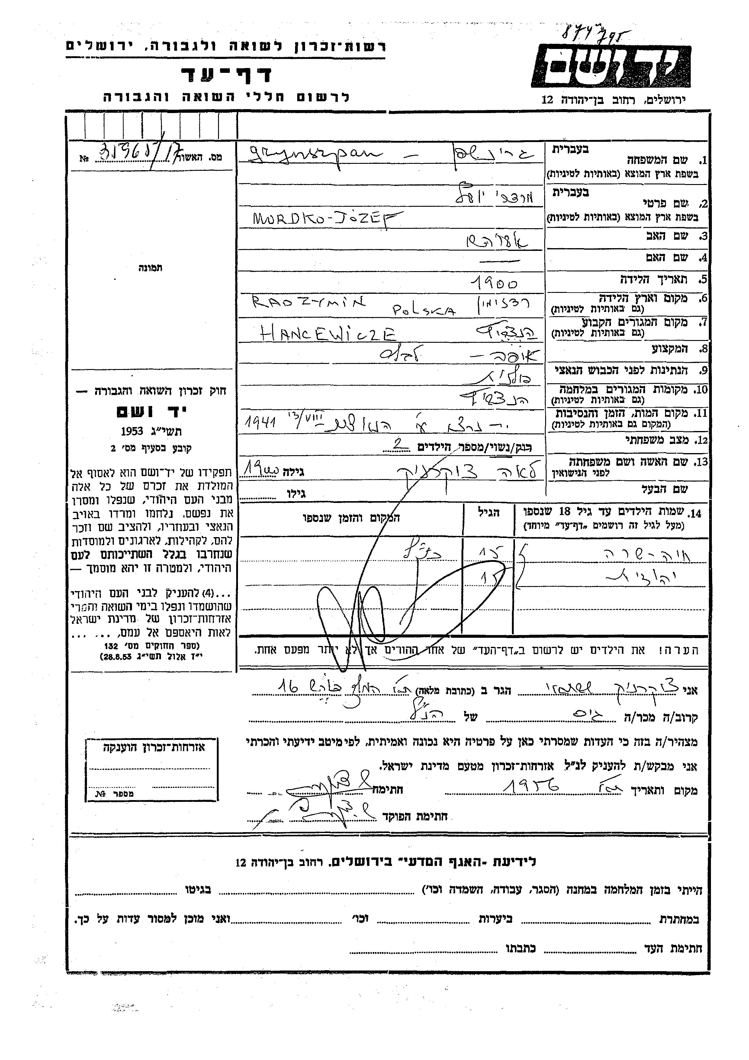 Yad Vashem - Pages of Testimony Names Memorial Collection