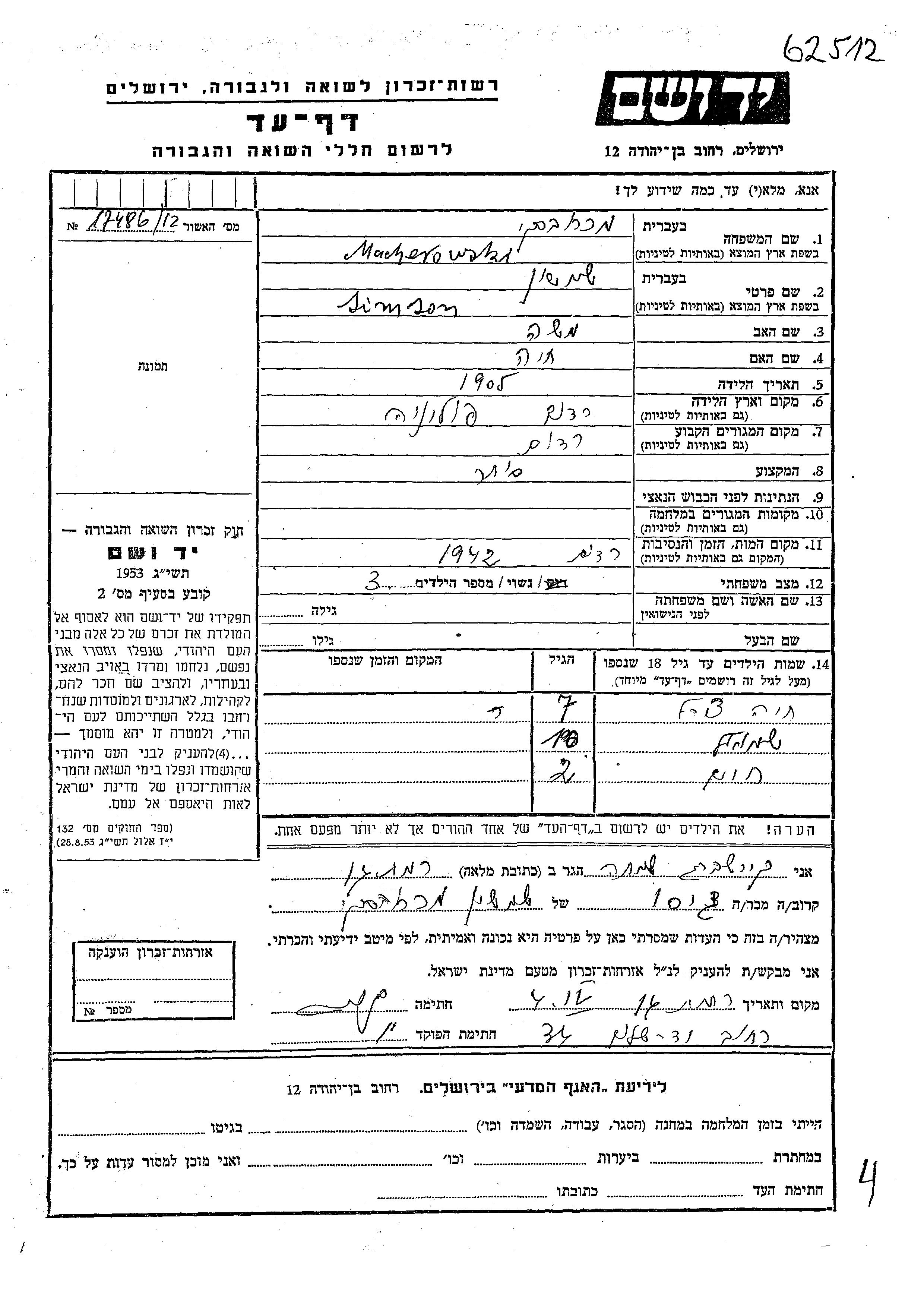Yad Vashem - Pages of Testimony Names Memorial Collection