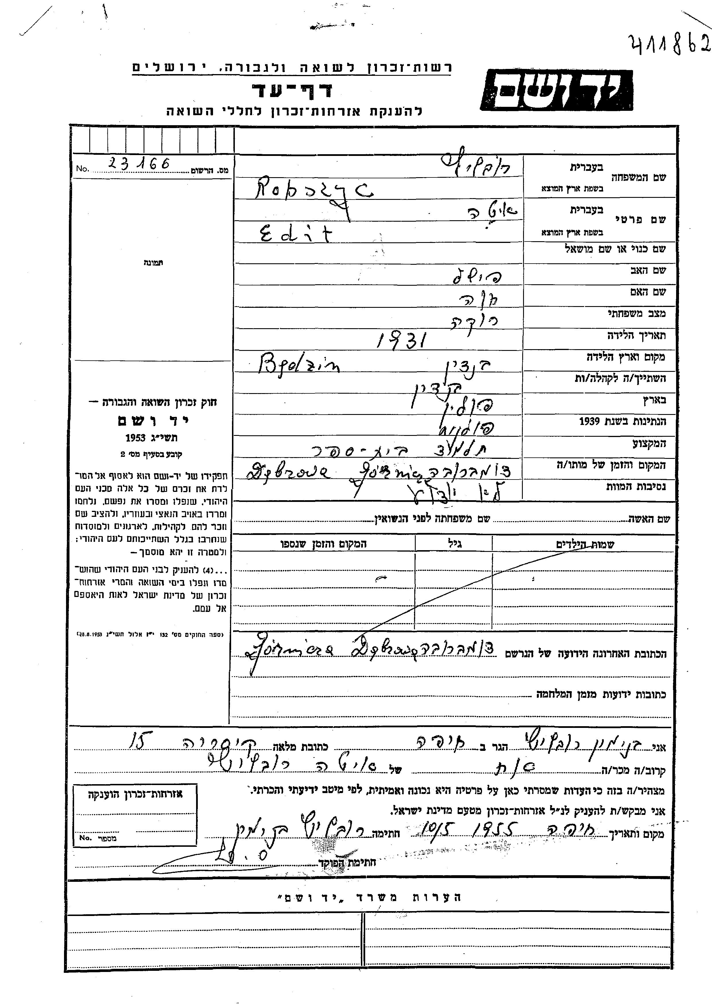 Robszyc | Ita Edit | Bendzin, Pologne | Feuille de témoignage |