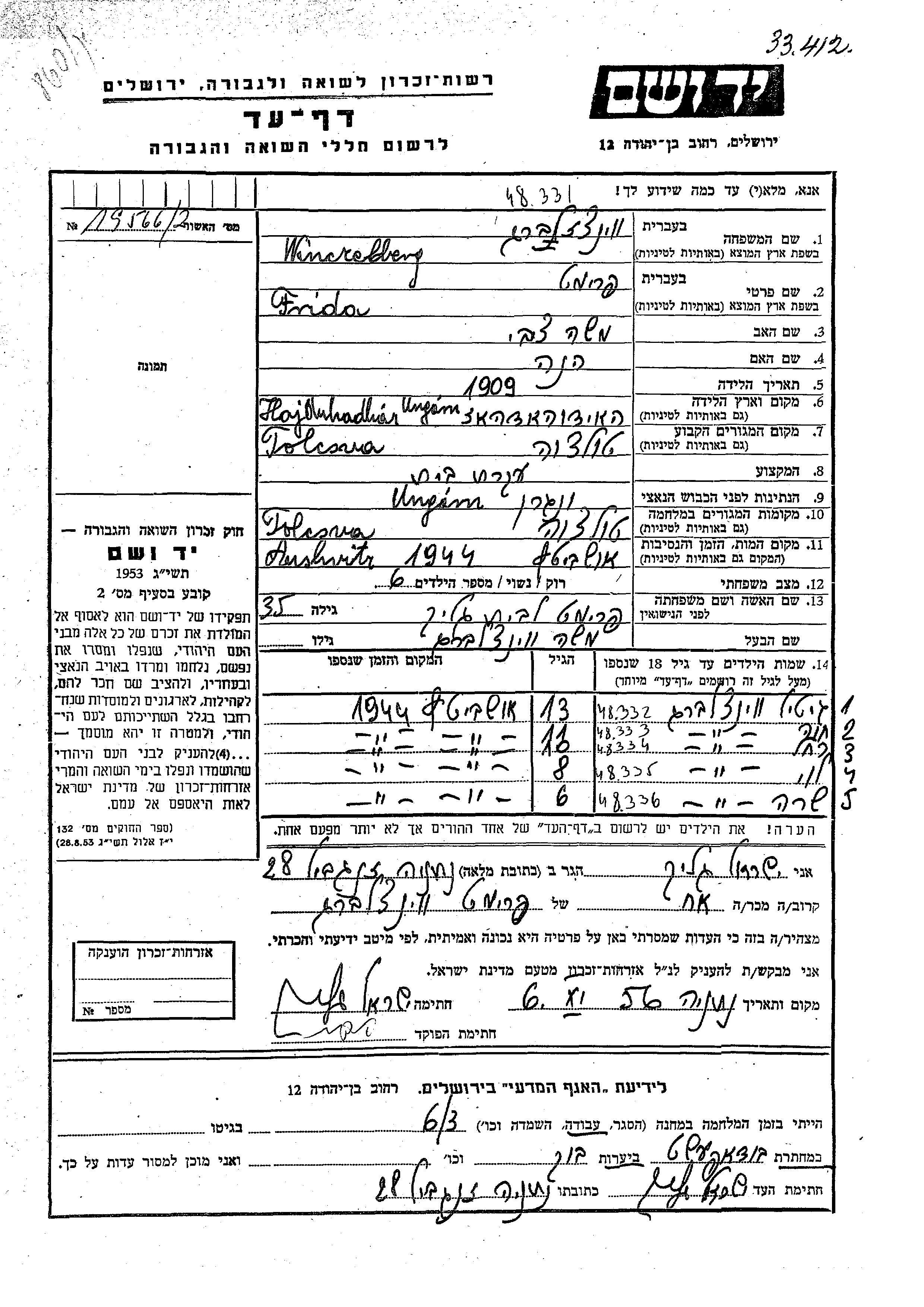 Yad Vashem - Pages of Testimony Names Memorial Collection