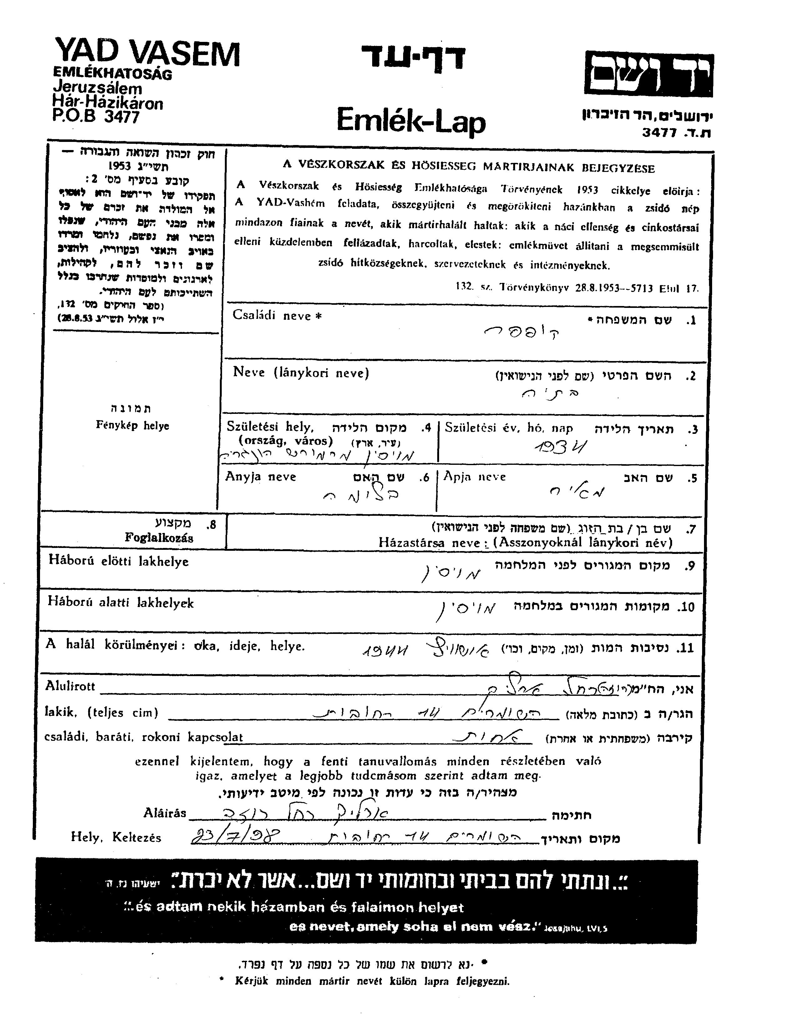 Yad Vashem - Pages of Testimony Names Memorial Collection