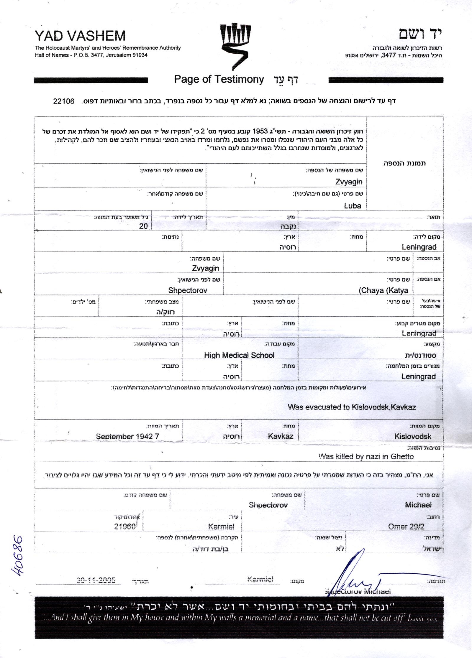 Luba Zvyagin est née à Leningrad, Russie (URSS) en 1922. Elle était Étudiant/e. Avant la seconde guerre mondiale elle vivait à Leningrad, Russie (URSS).
