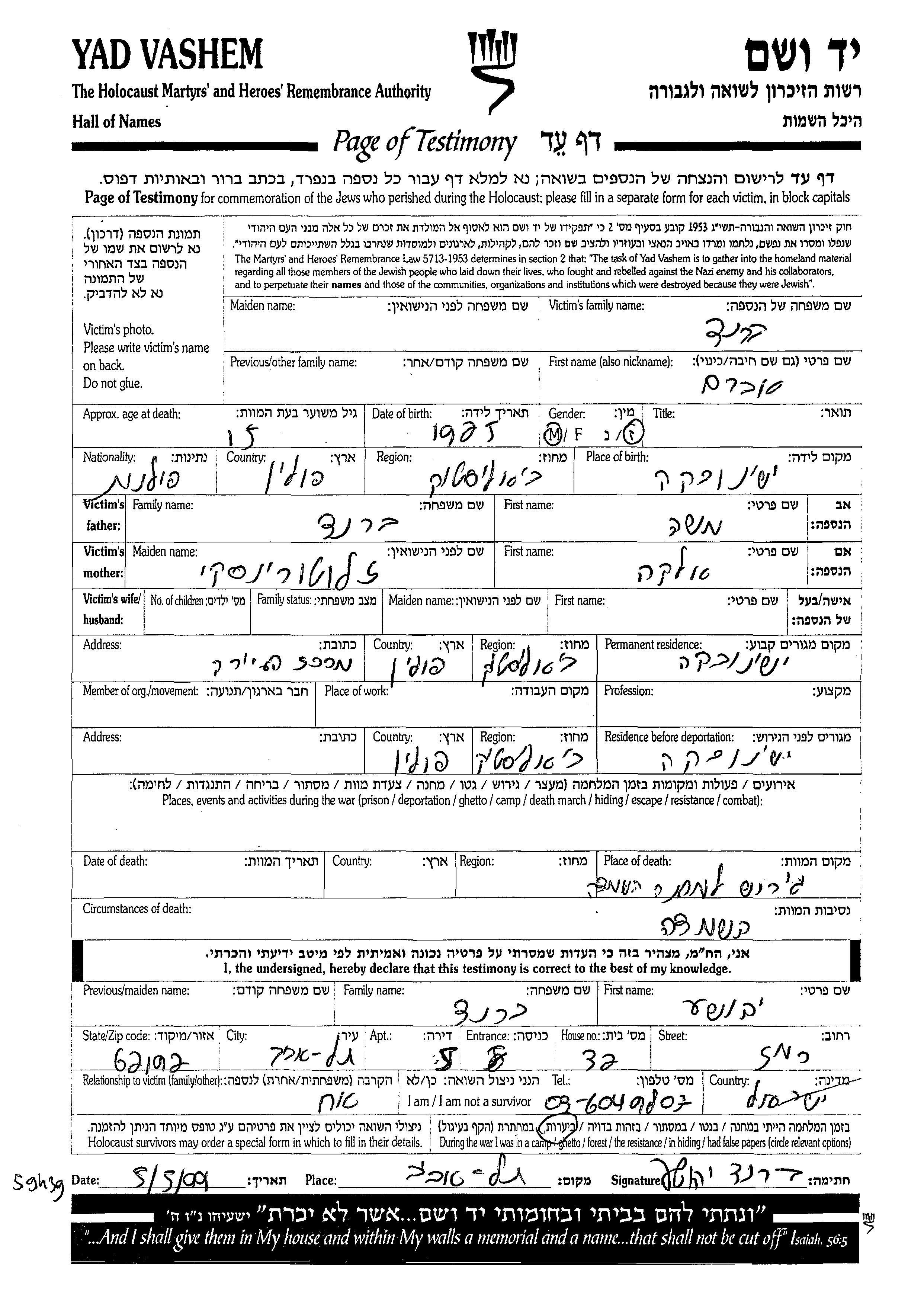 Yad Vashem - Pages of Testimony Names Memorial Collection