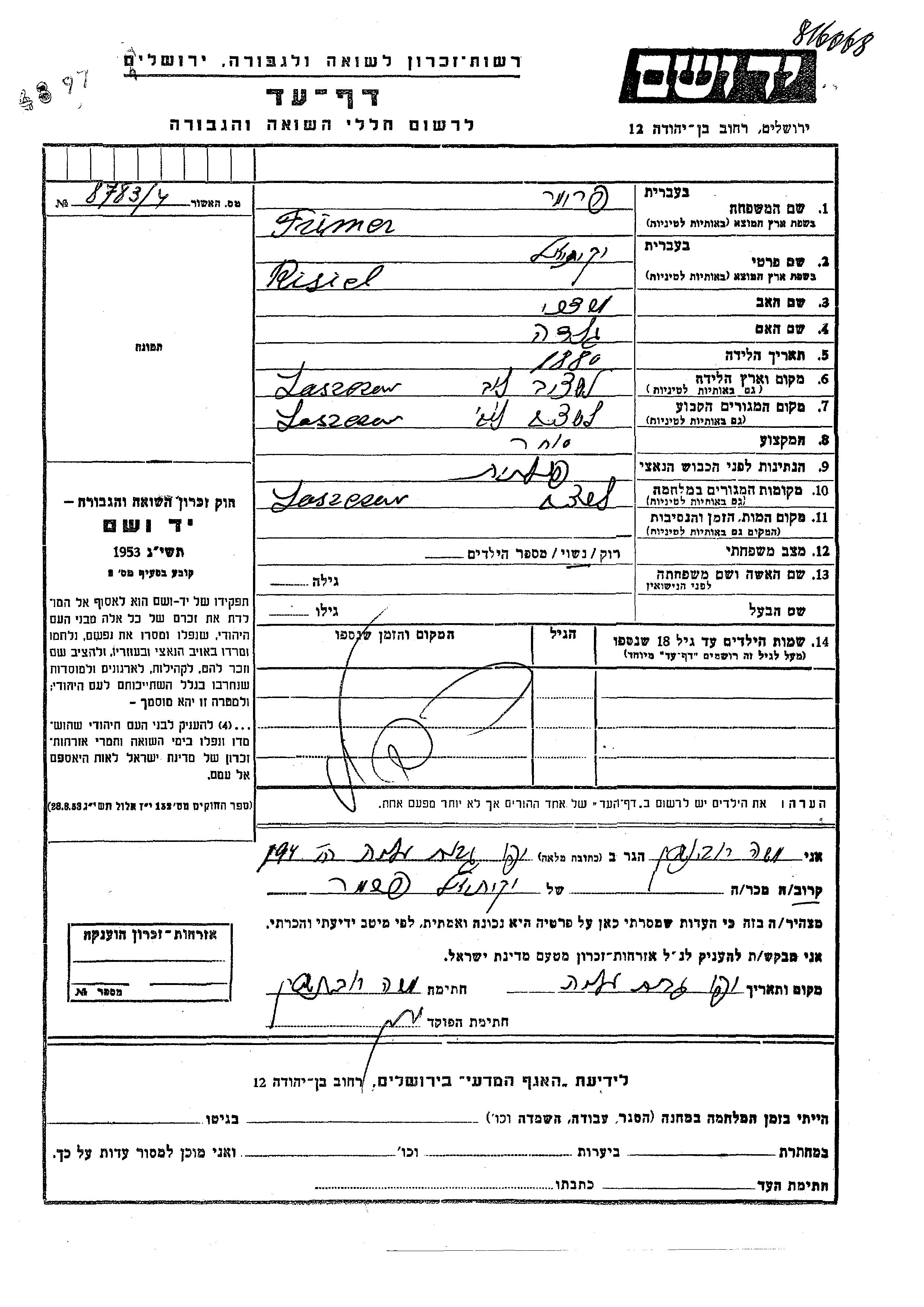 Yad Vashem - Pages of Testimony Names Memorial Collection