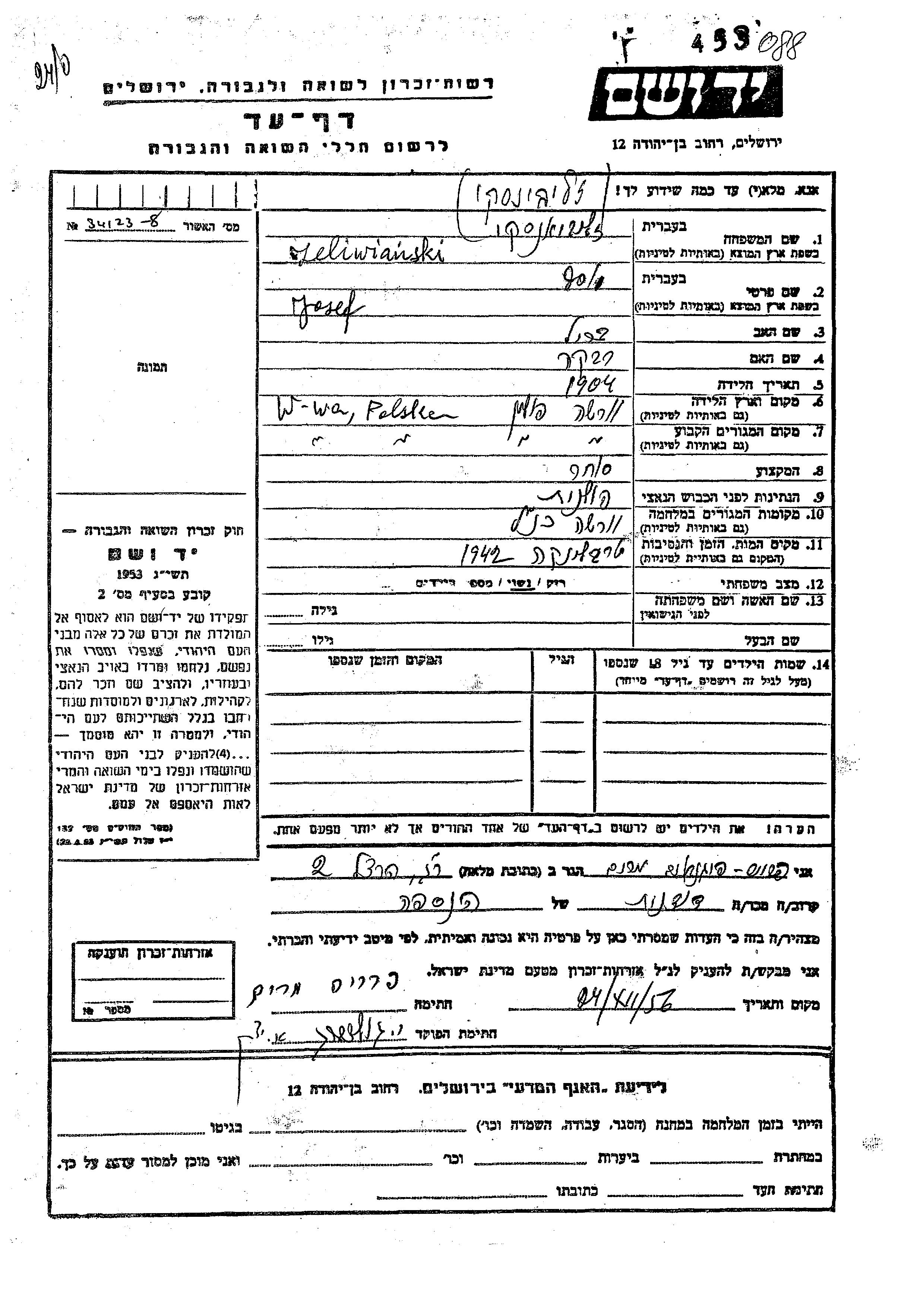Yosef Zelwiansky est né à Warszawa, Pologne. Avant la seconde guerre mondiale il vivait à Warszawa, Pologne.