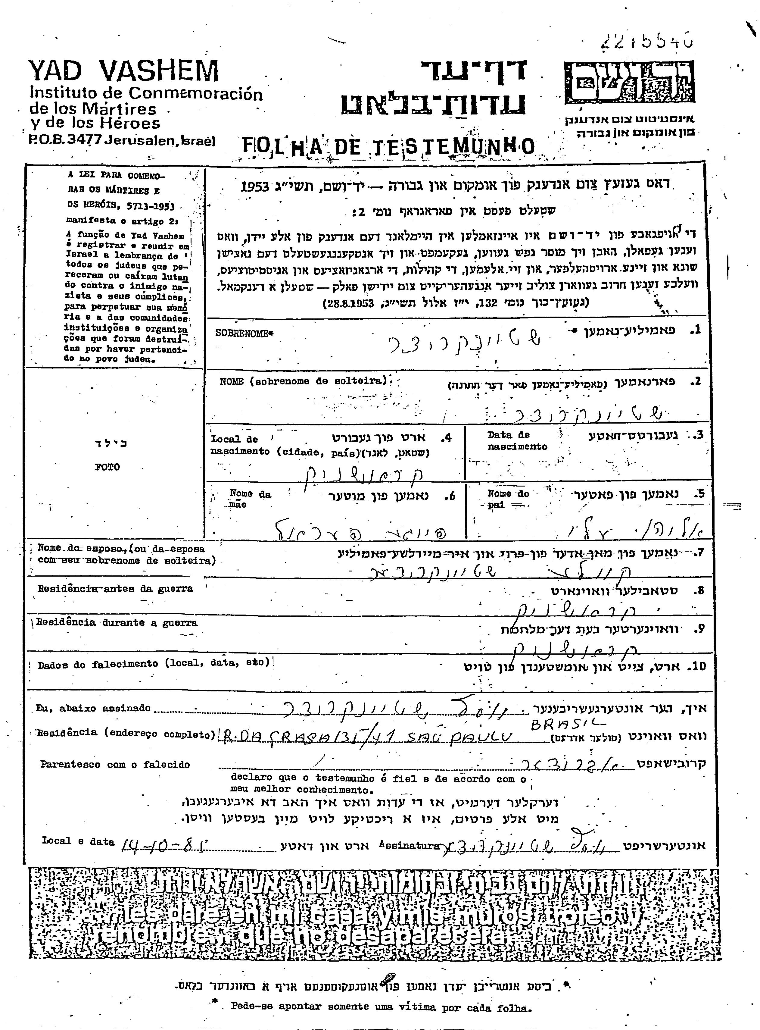 Yad Vashem - Pages of Testimony Names Memorial Collection