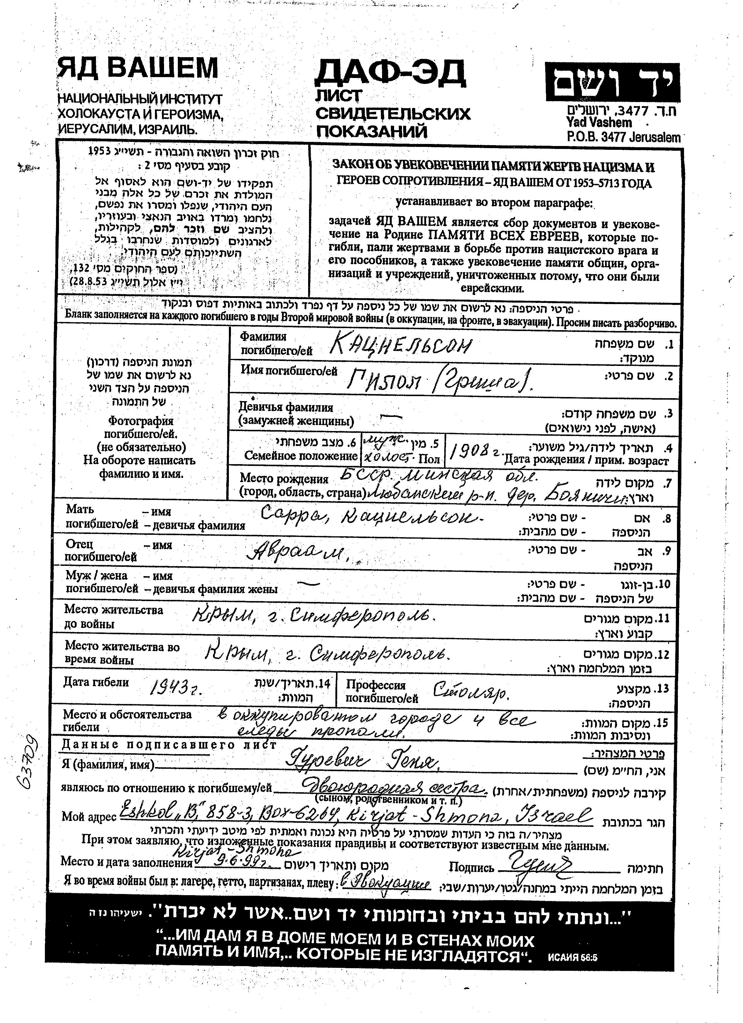 Yad Vashem - Pages of Testimony Names Memorial Collection