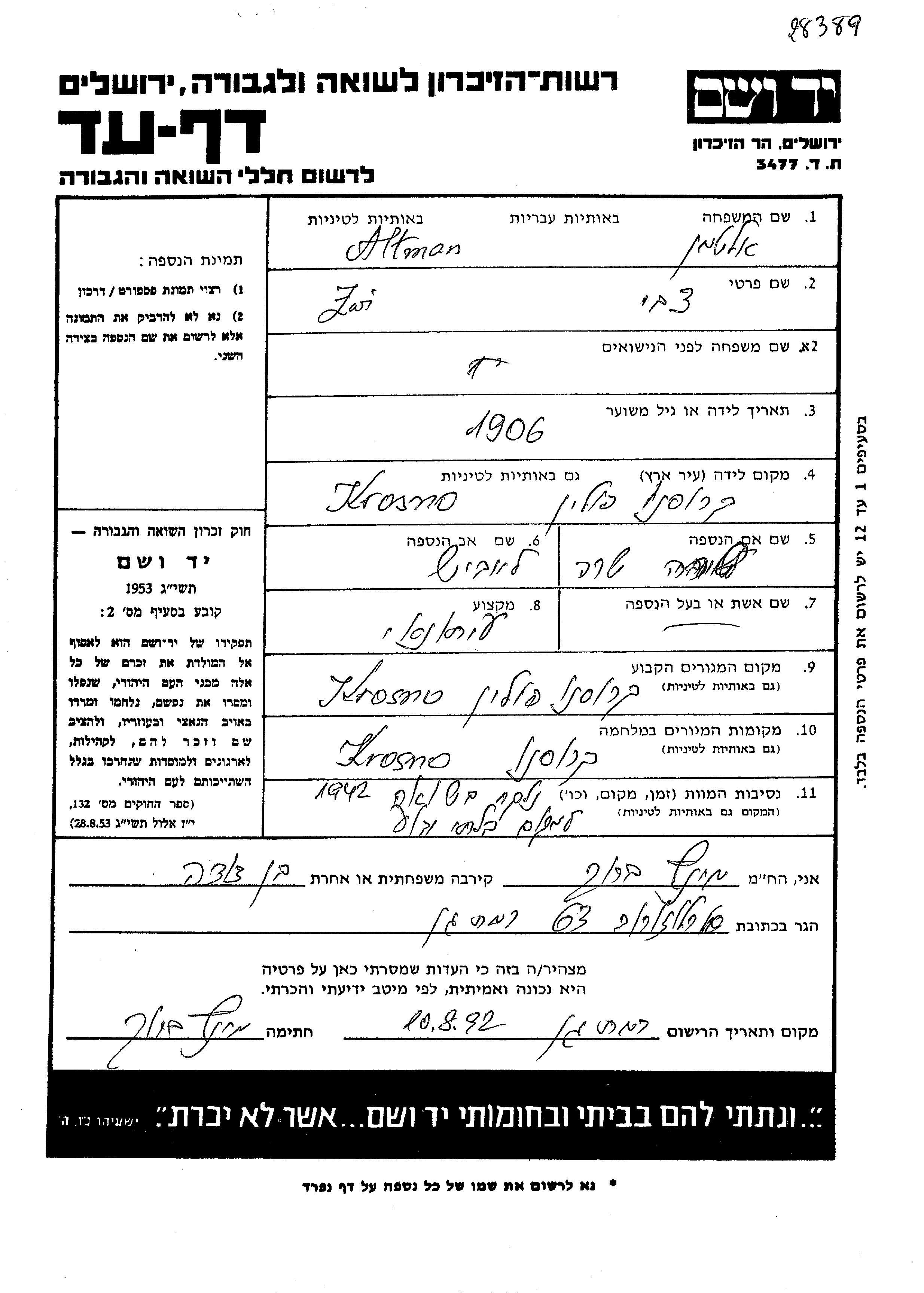 Yad Vashem - Pages of Testimony Names Memorial Collection