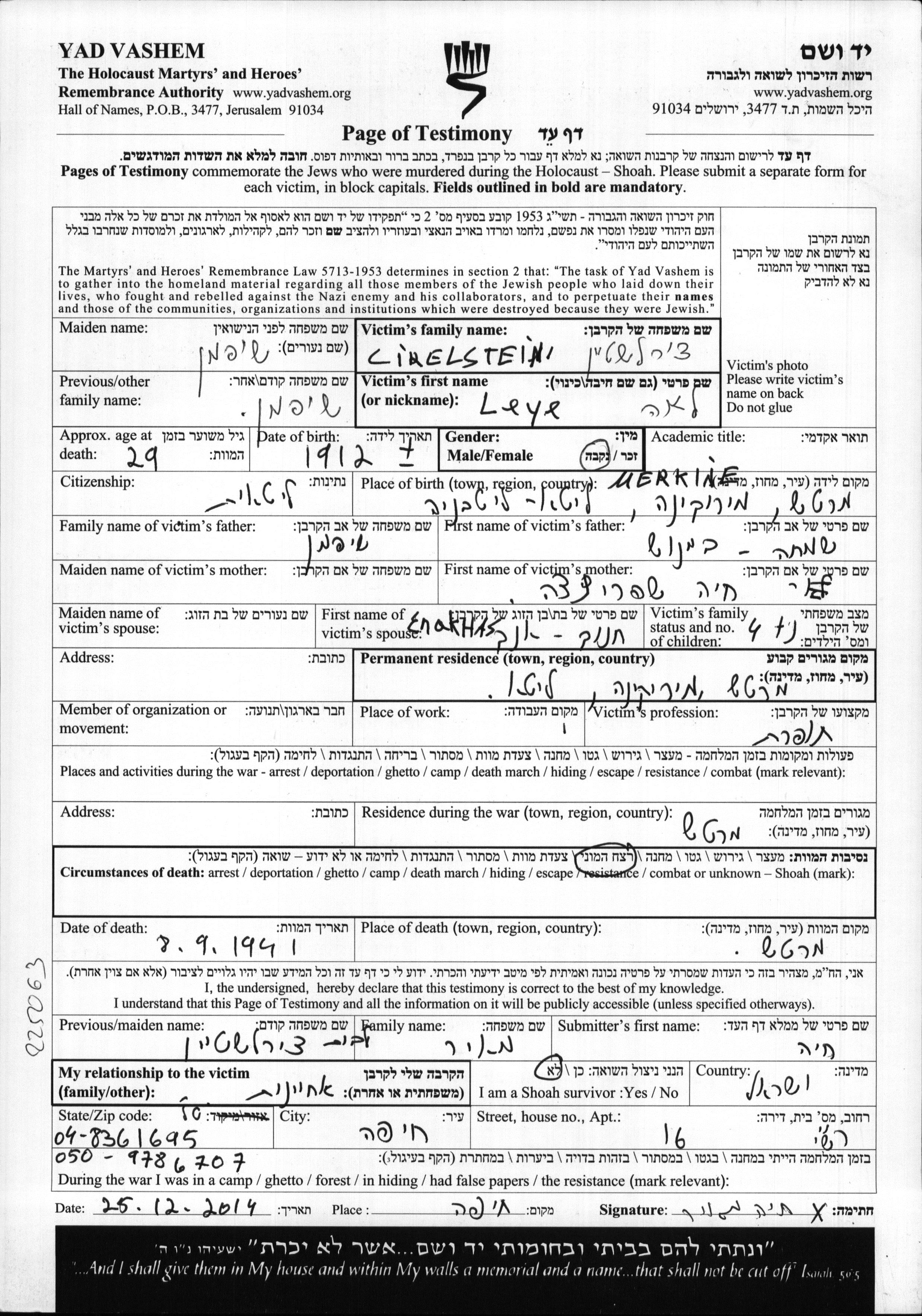Yad Vashem - Pages of Testimony Names Memorial Collection