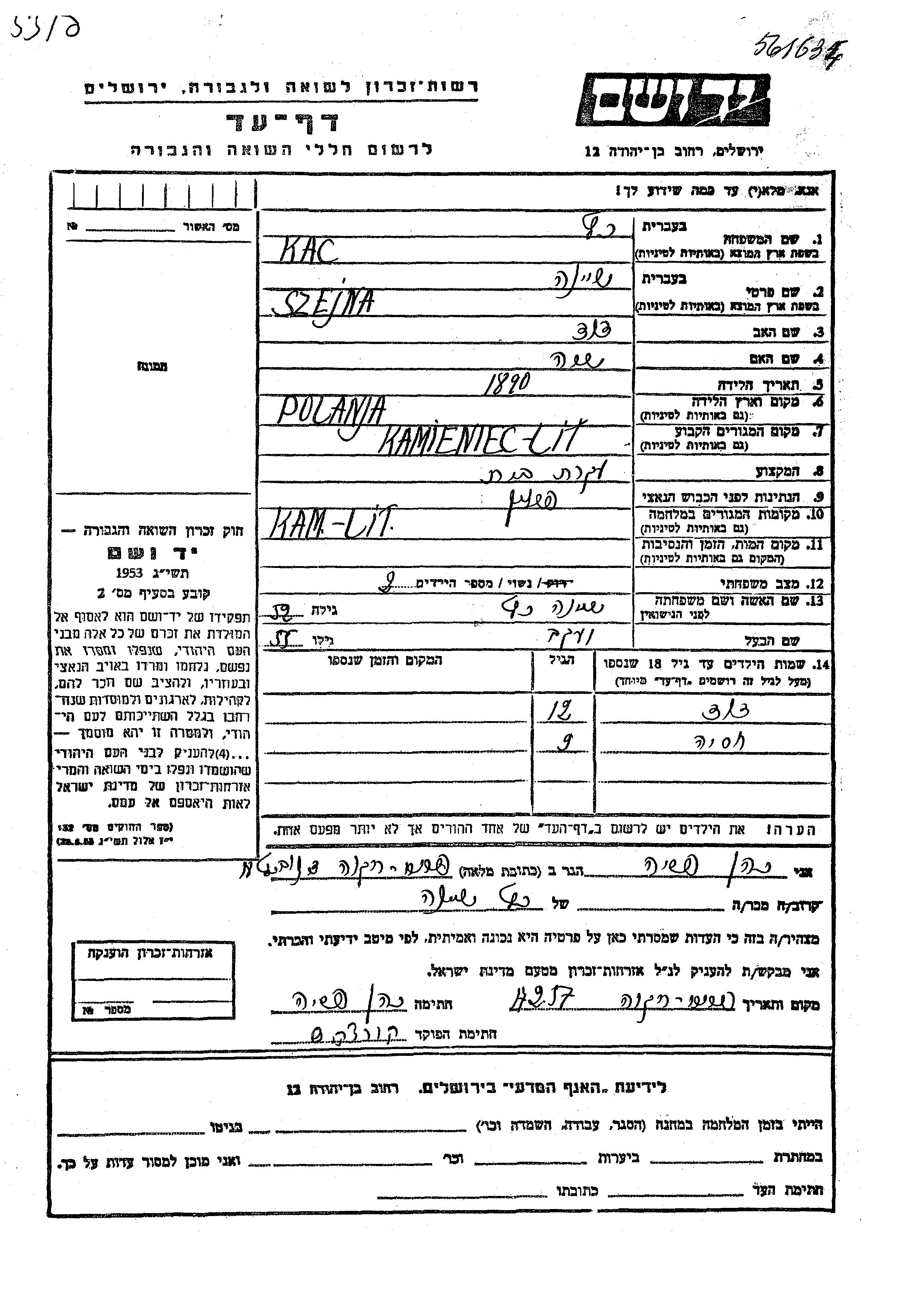 Yad Vashem - Pages of Testimony Names Memorial Collection