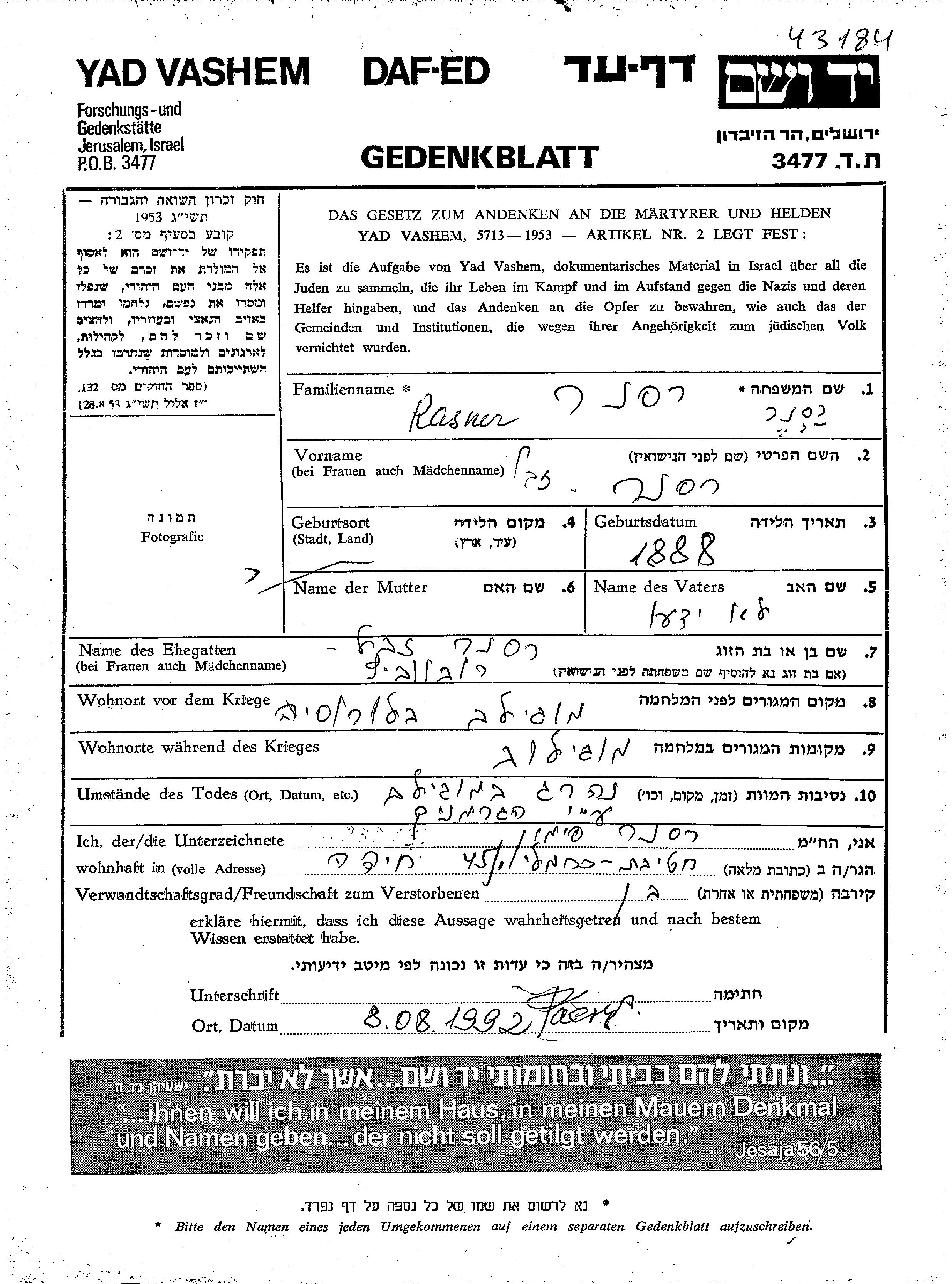 Yad Vashem - Pages of Testimony Names Memorial Collection