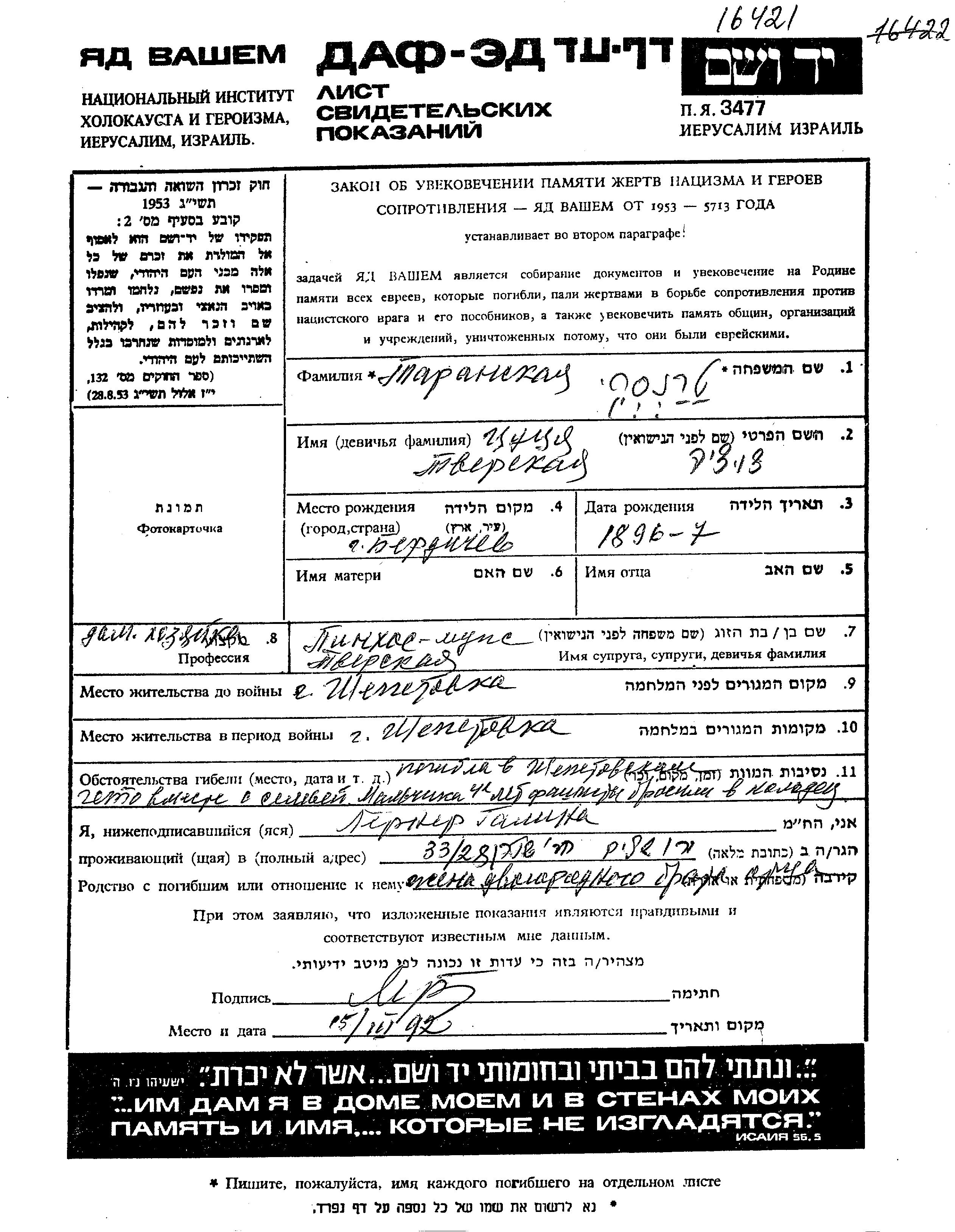 Recherche par lieu de résidence permanente avant la Shoah, ville, village, département, région ou pays.