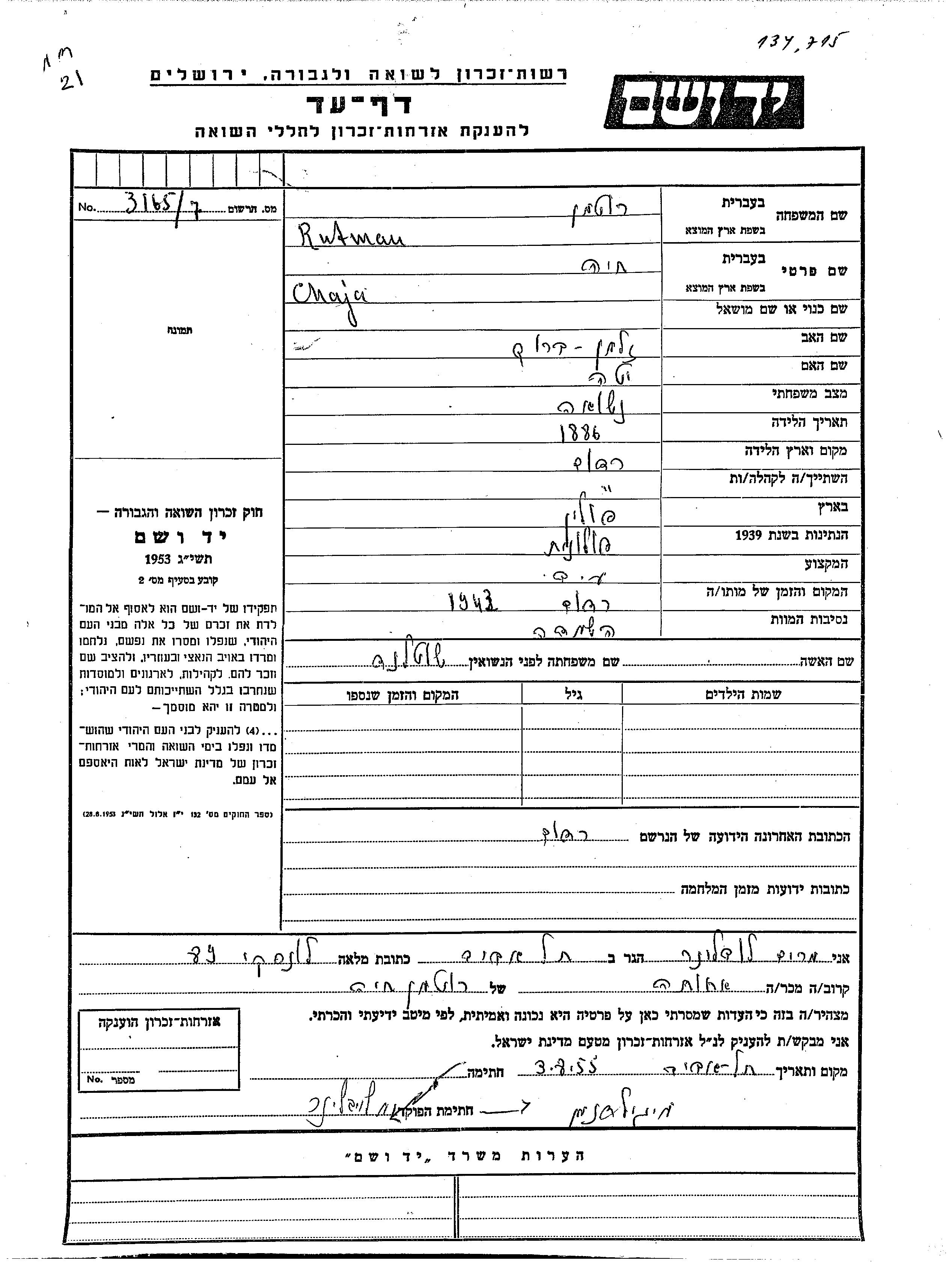 Rutman Rotman | Chaja | 1886 | Radom, Pologne | Feuille de témoignage |