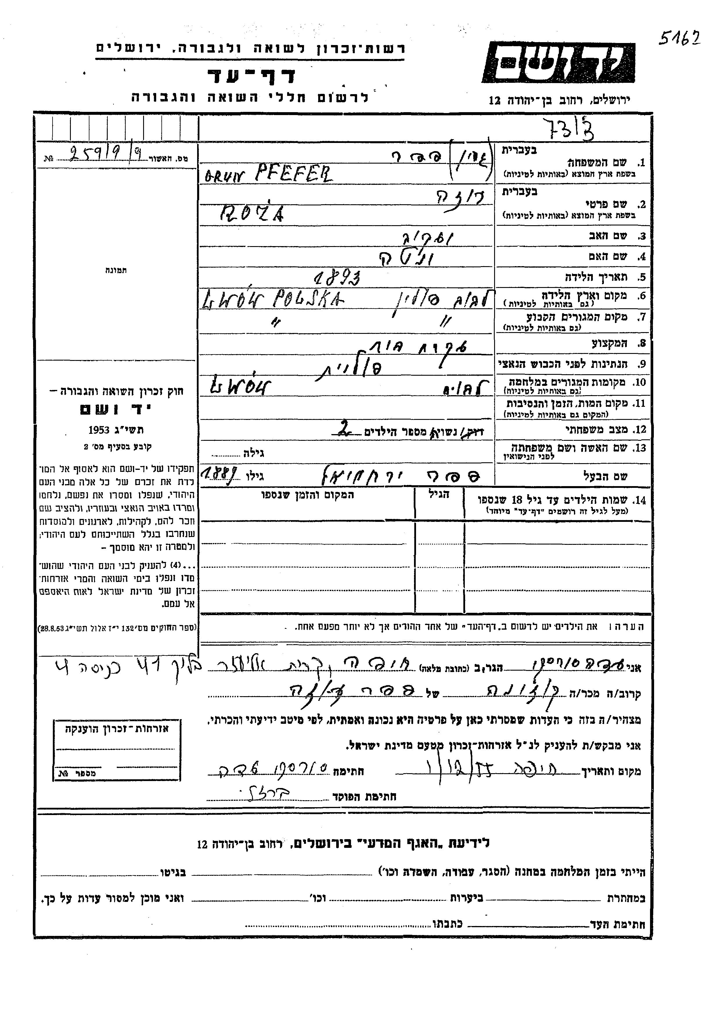Yad Vashem - Pages of Testimony Names Memorial Collection