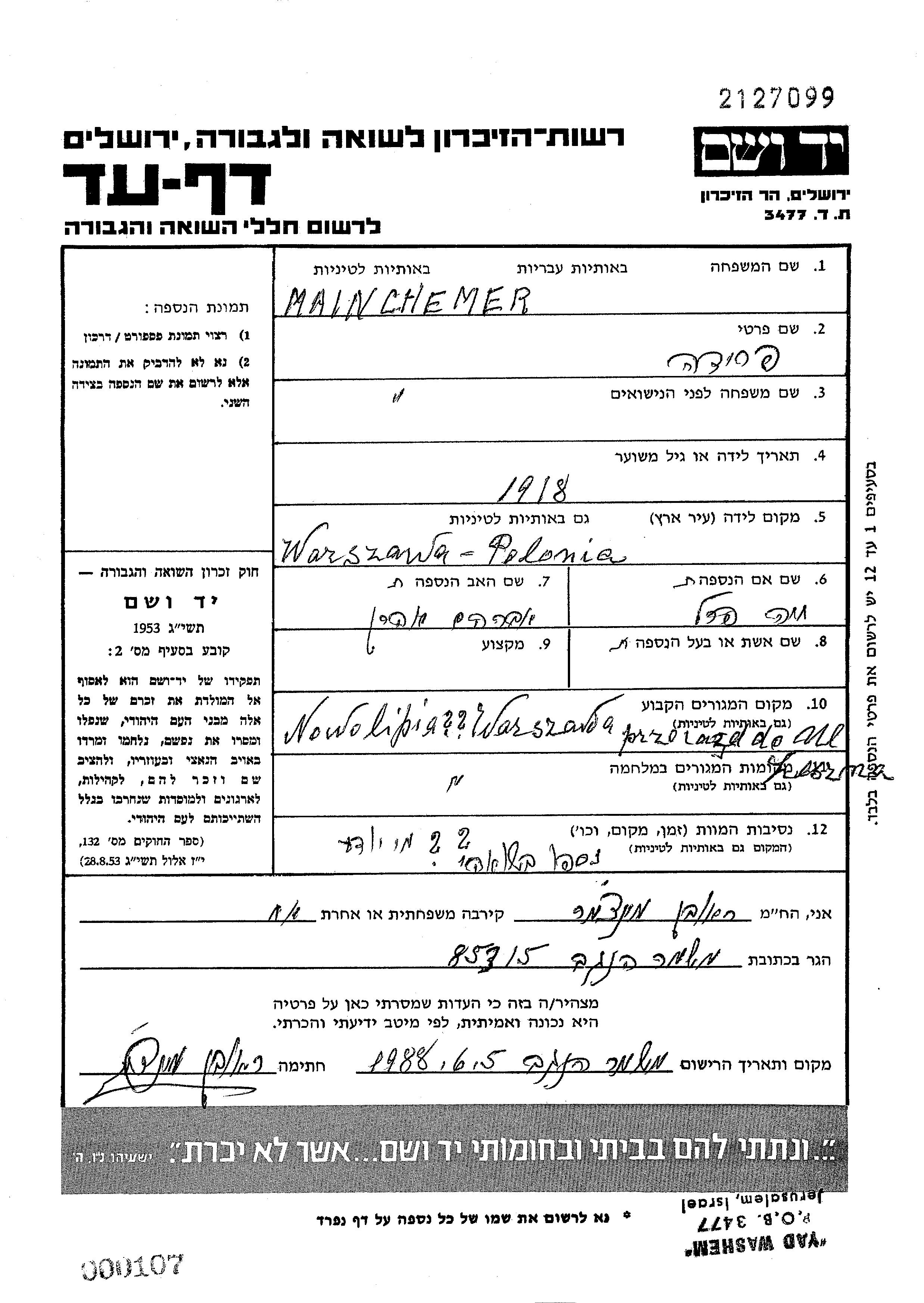 Yad Vashem - Pages of Testimony Names Memorial Collection