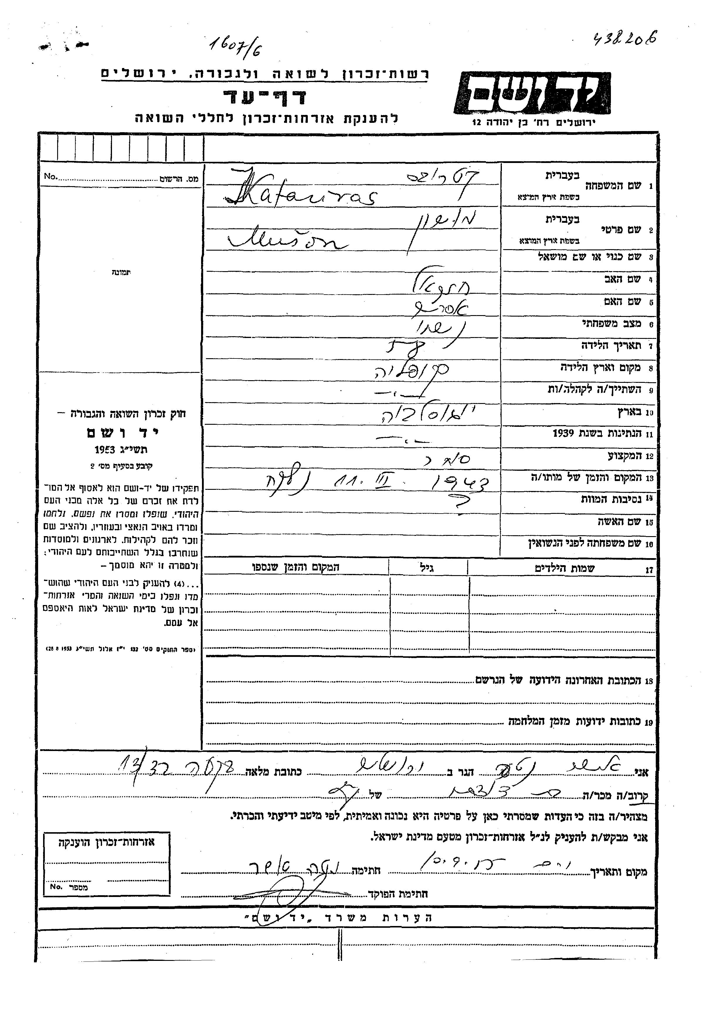 Yad Vashem - Pages of Testimony Names Memorial Collection