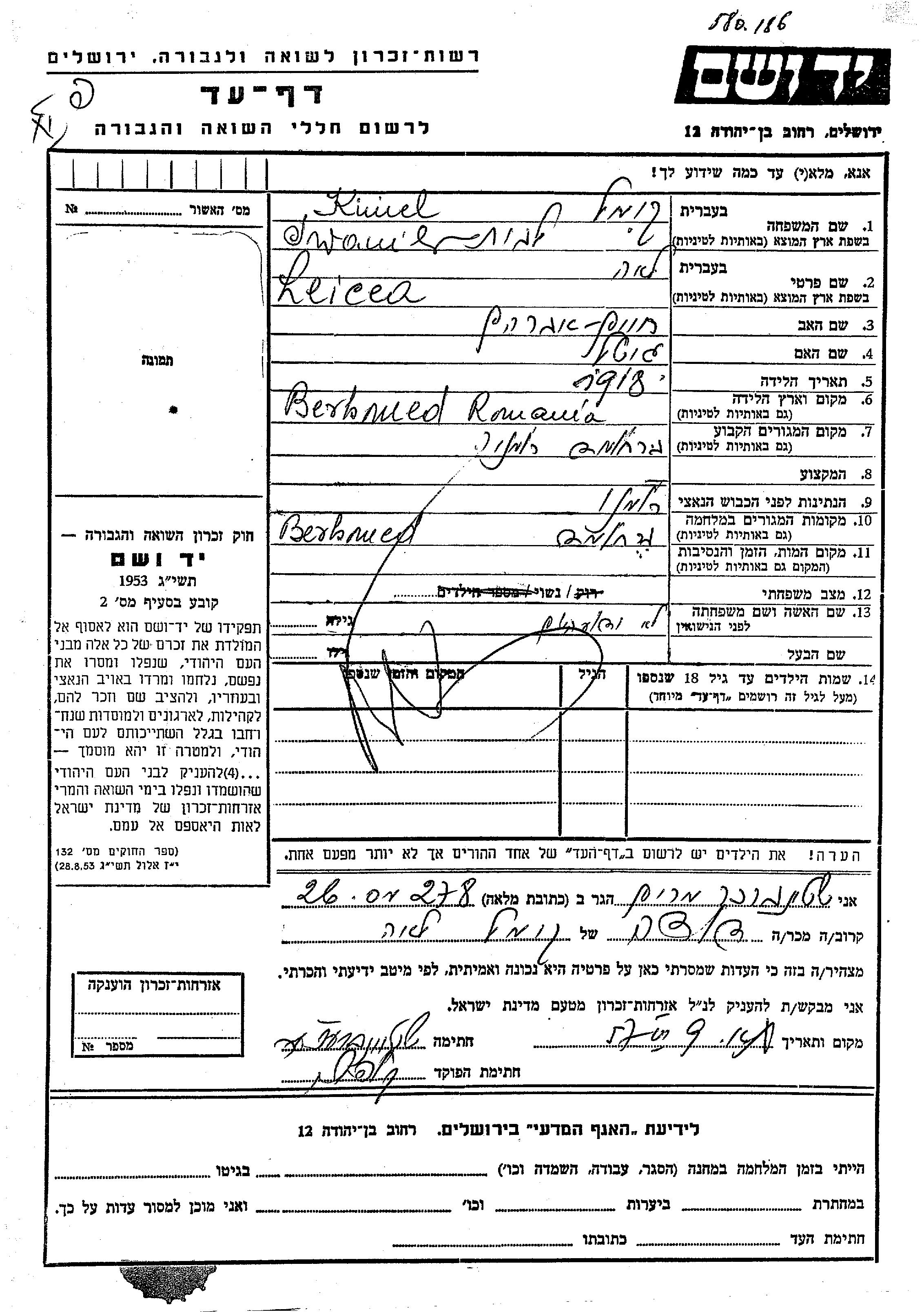Kimel | Leicea | 1918 | Berhomed, Roumanie | Feuille de témoignage |