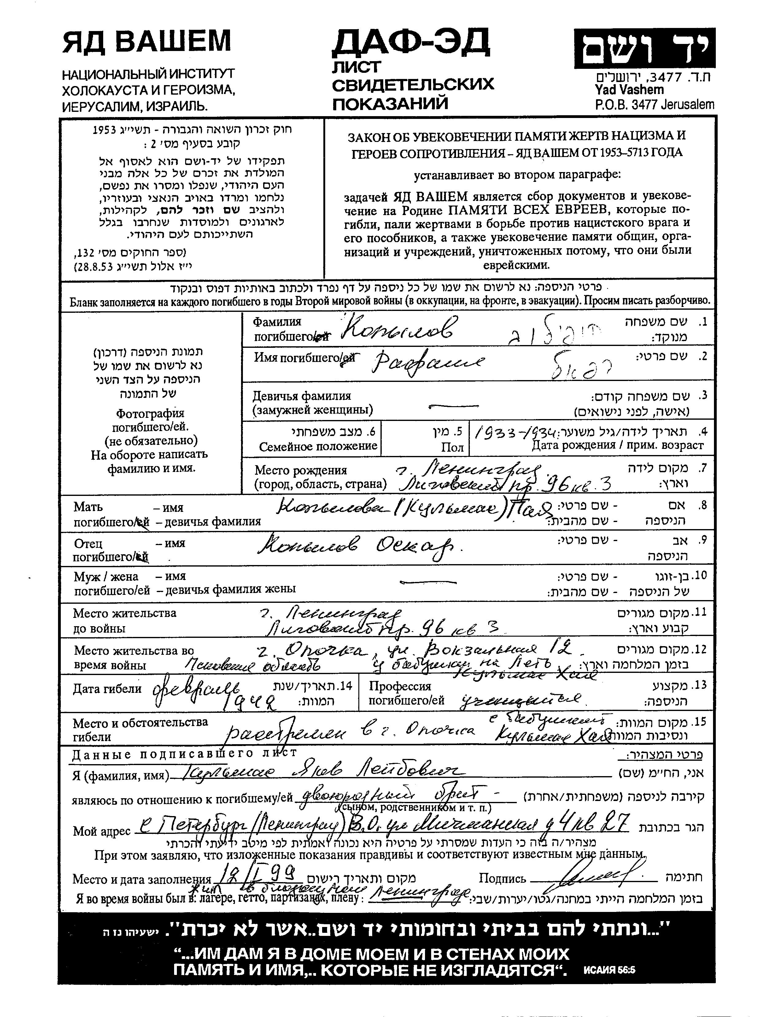 Yad Vashem - Pages of Testimony Names Memorial Collection