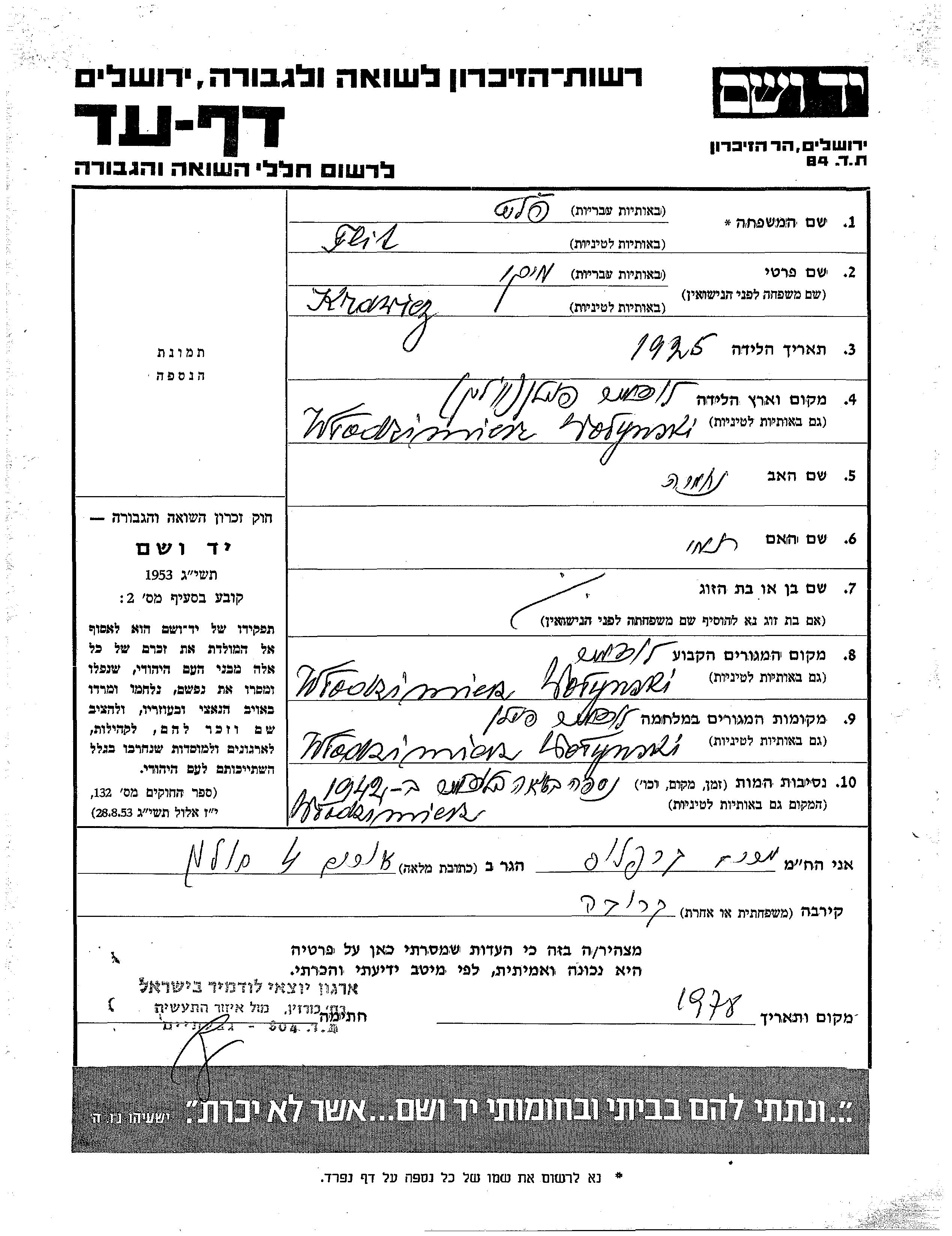 Yad Vashem - Pages of Testimony Names Memorial Collection