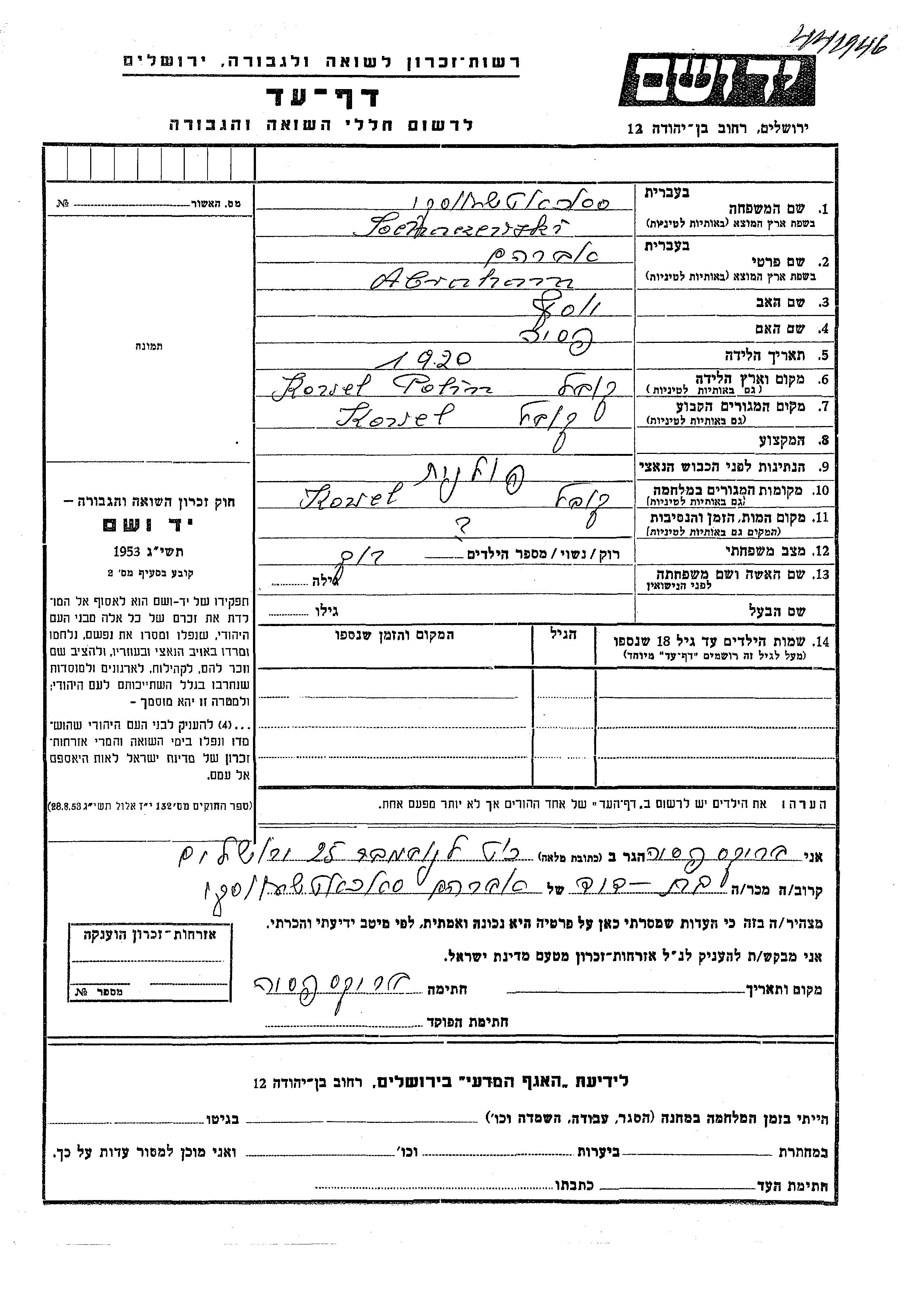 Yad Vashem - Pages of Testimony Names Memorial Collection