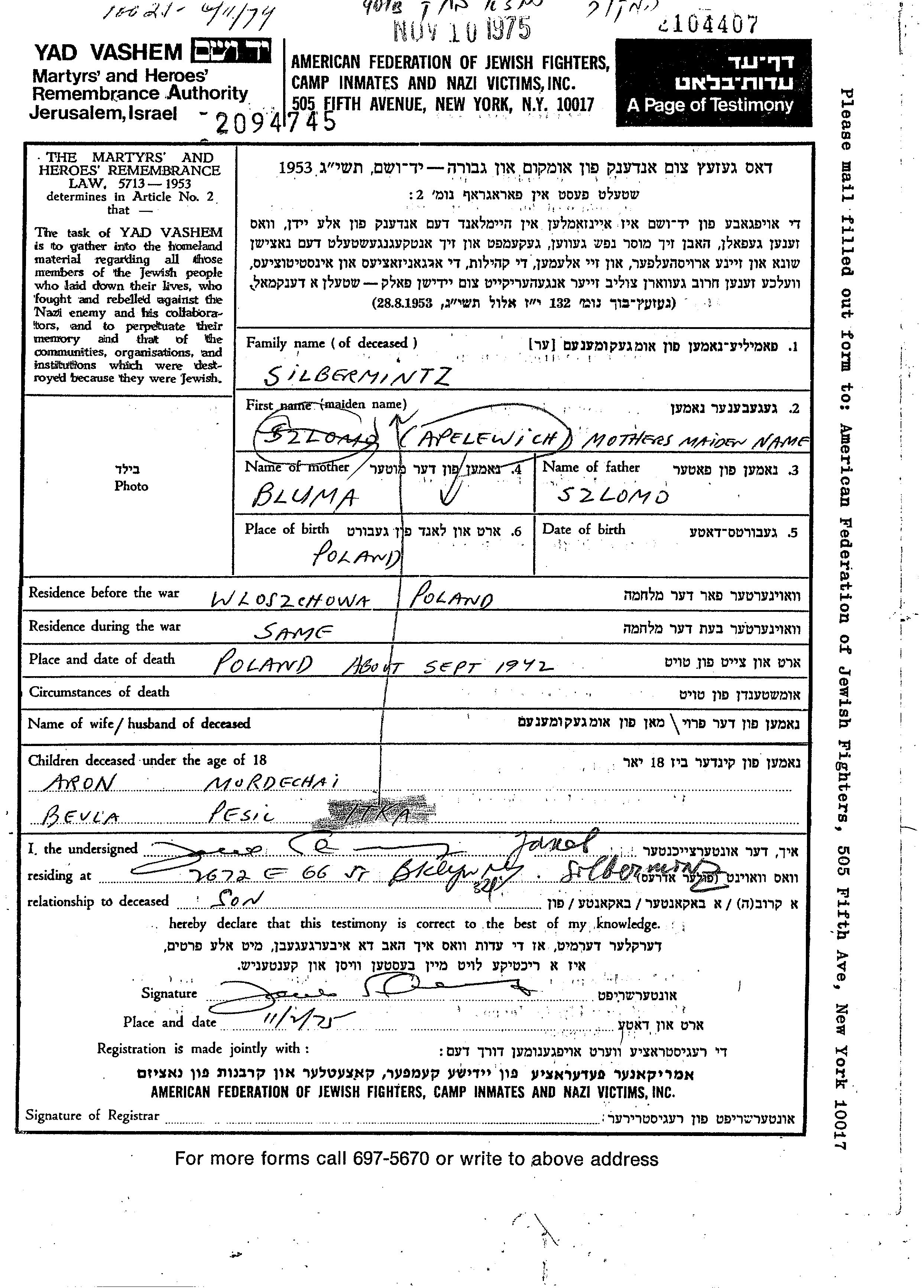 Yad Vashem - Pages of Testimony Names Memorial Collection