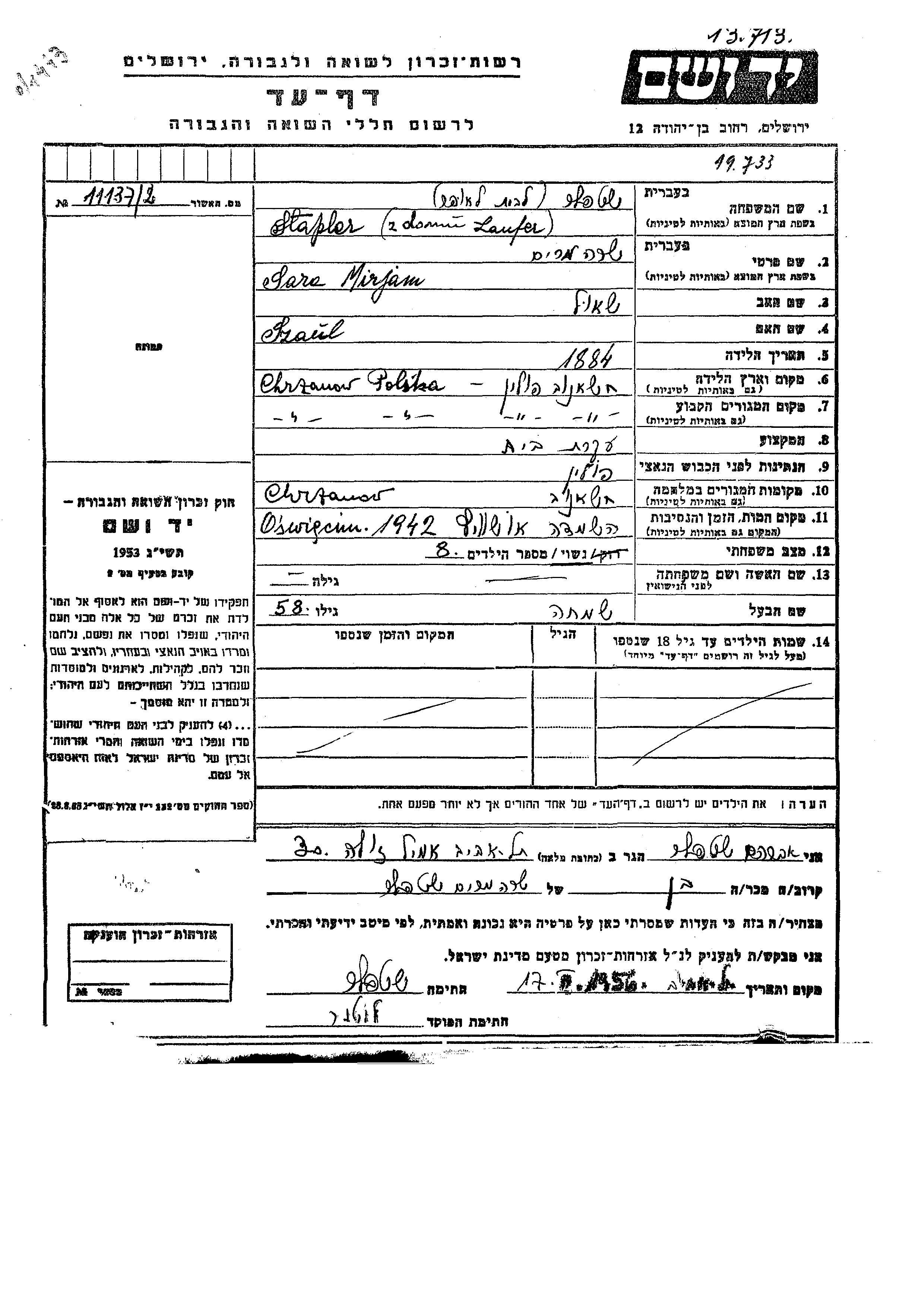 Yad Vashem - Pages of Testimony Names Memorial Collection