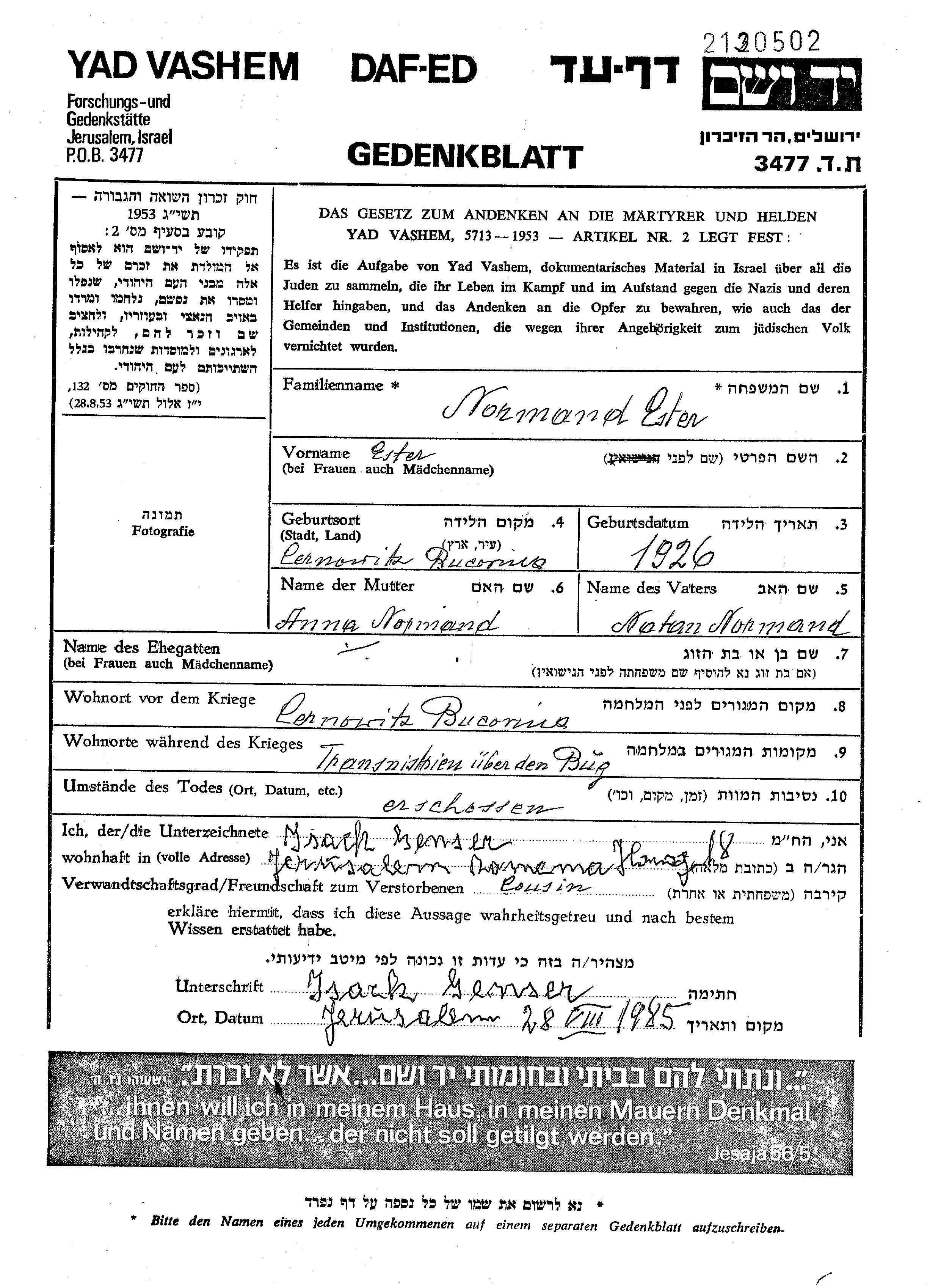 Yad Vashem - Pages of Testimony Names Memorial Collection