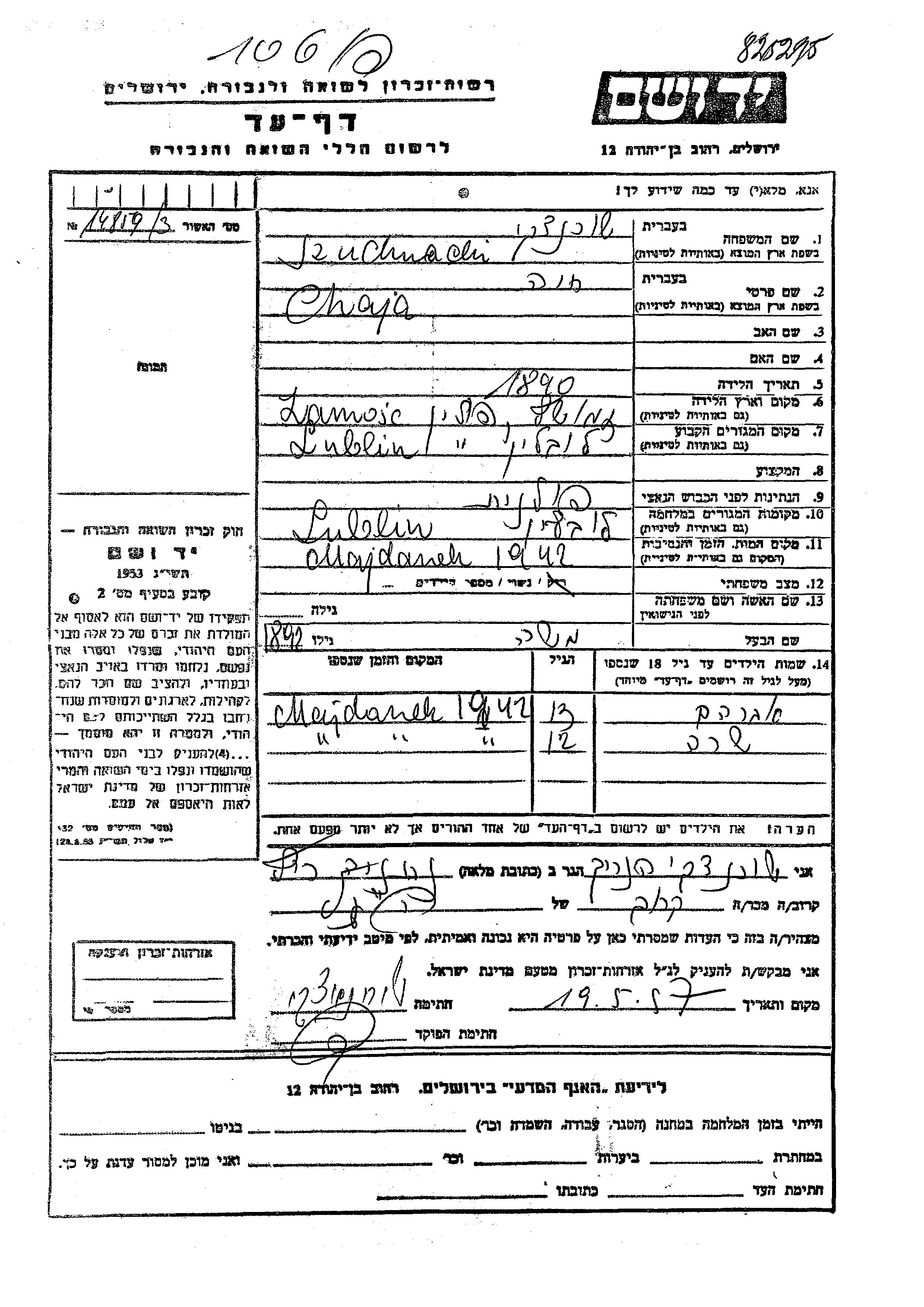 Yad Vashem - Pages of Testimony Names Memorial Collection