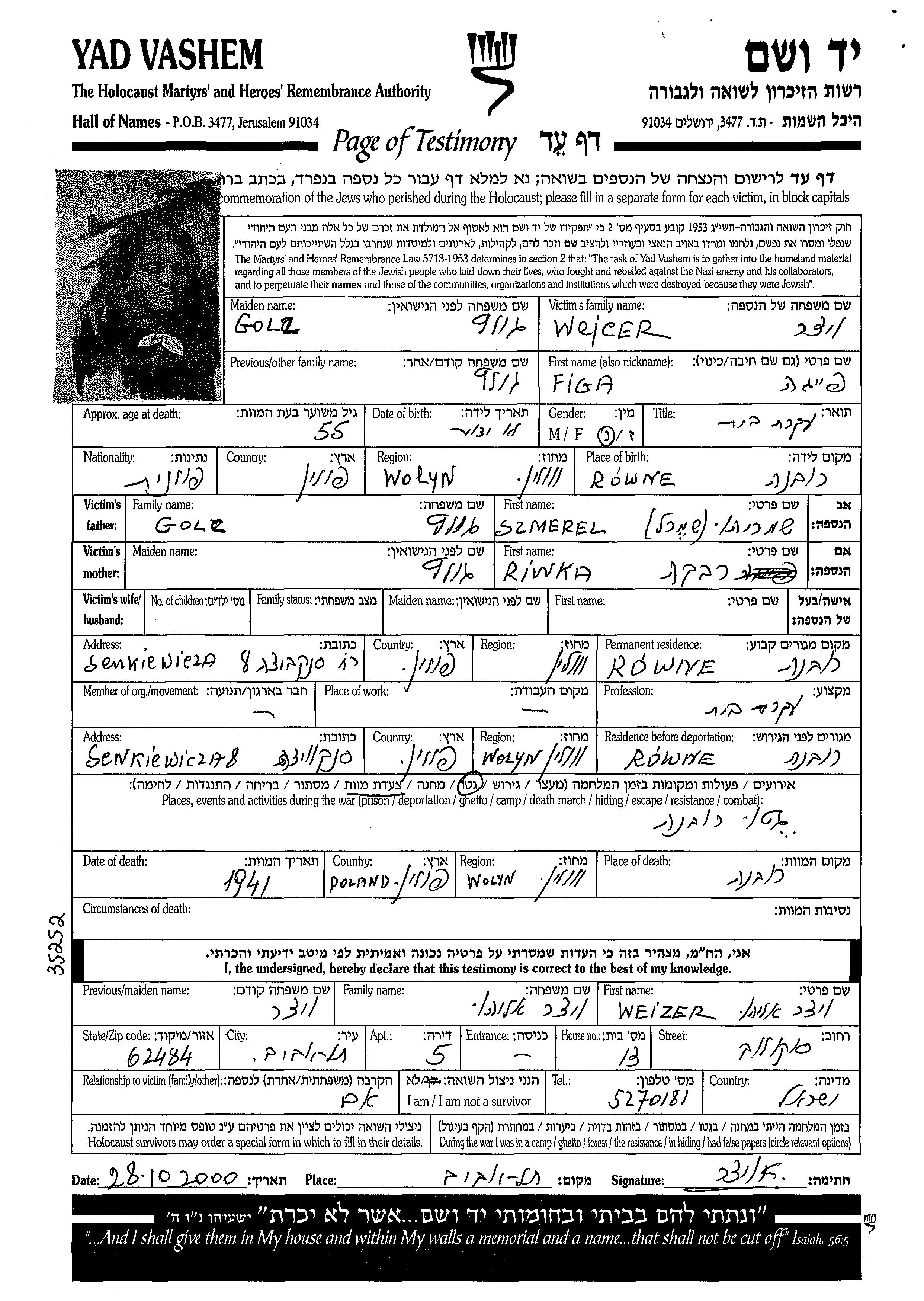 Recherche par date de la mort pendant la période de la Shoah: 1933-1945. Sélectionnez 'Exact'; dans la liste pour rechercher l'année exacte, ou sélectionner '+/- 2 ans'; ou '+/- 5 ans