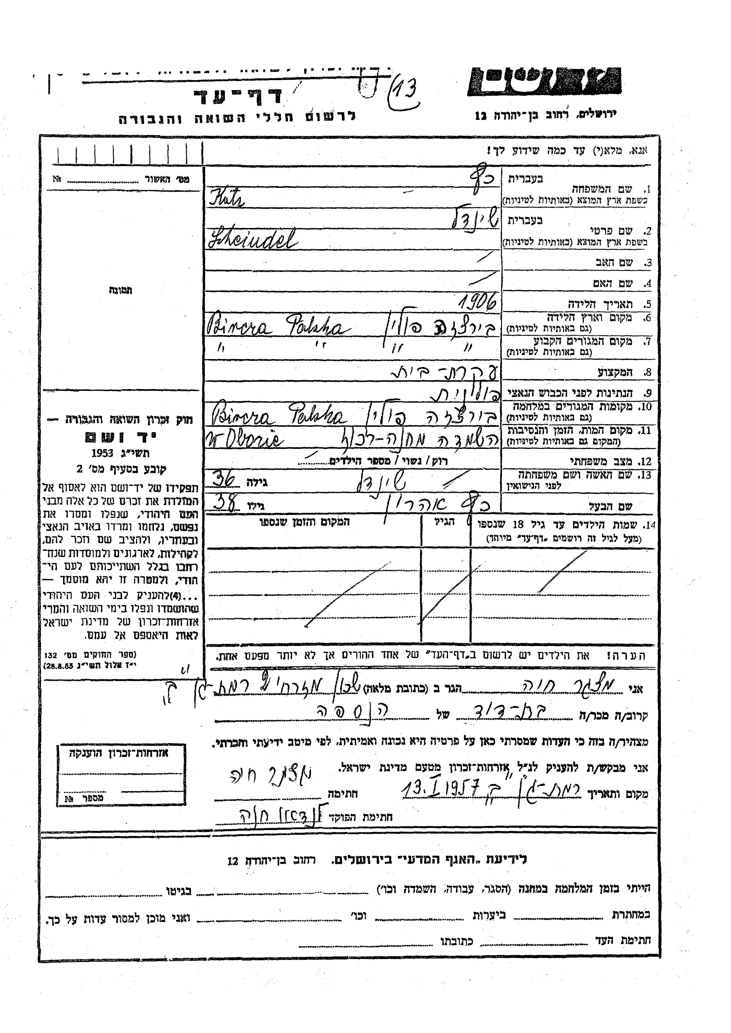 Yad Vashem - Pages of Testimony Names Memorial Collection
