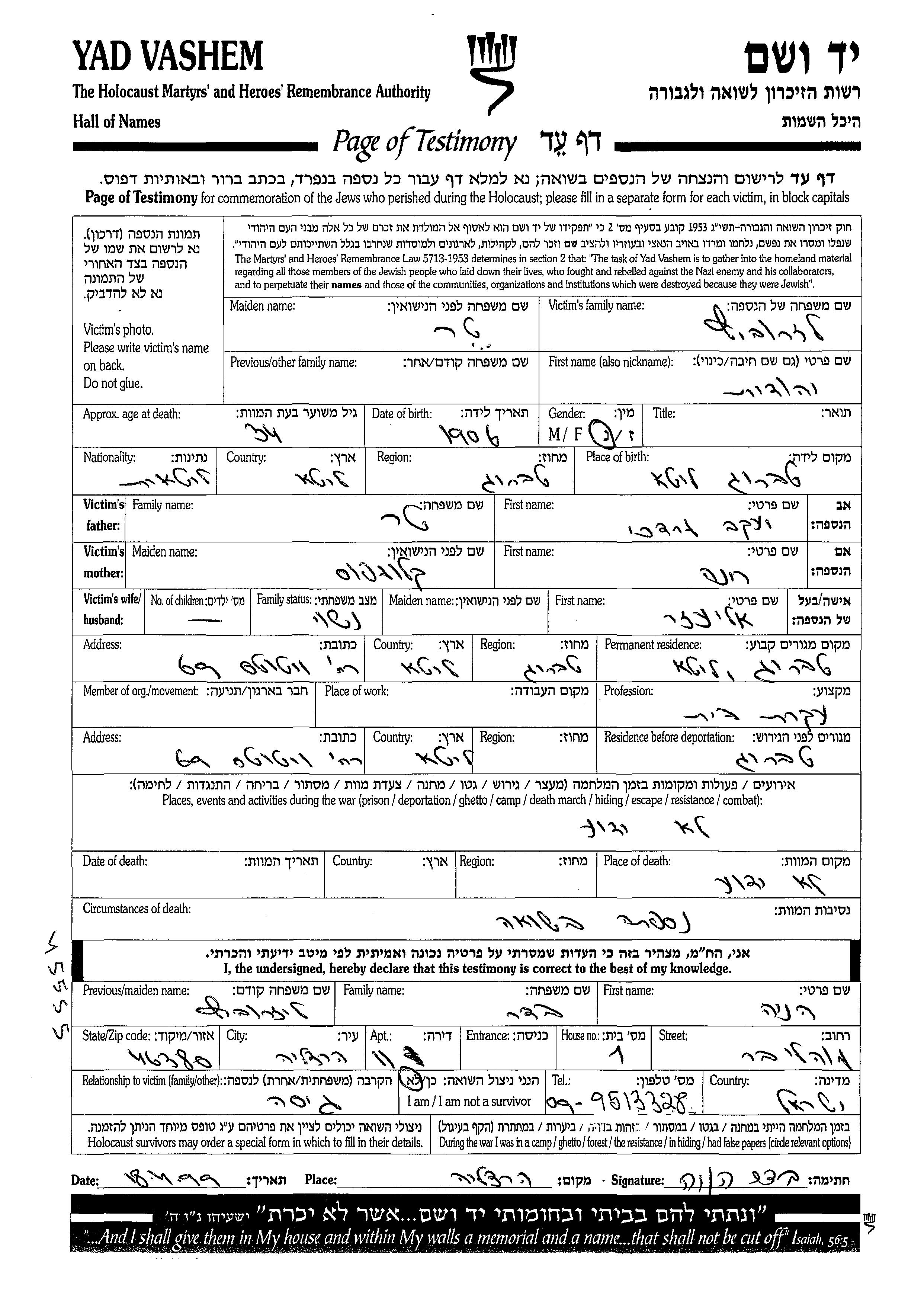 Yad Vashem - Pages of Testimony Names Memorial Collection