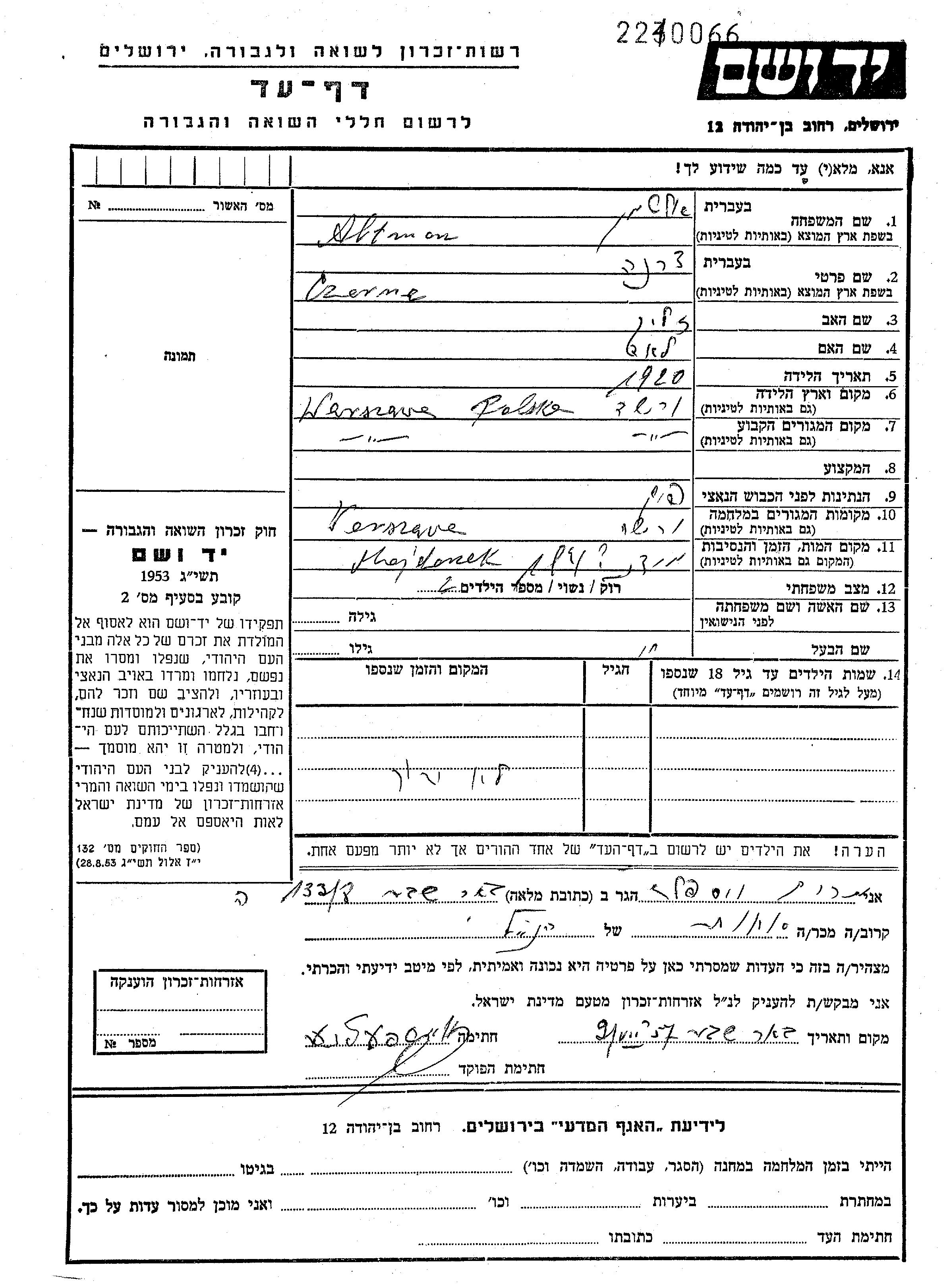 Yad Vashem - Pages of Testimony Names Memorial Collection