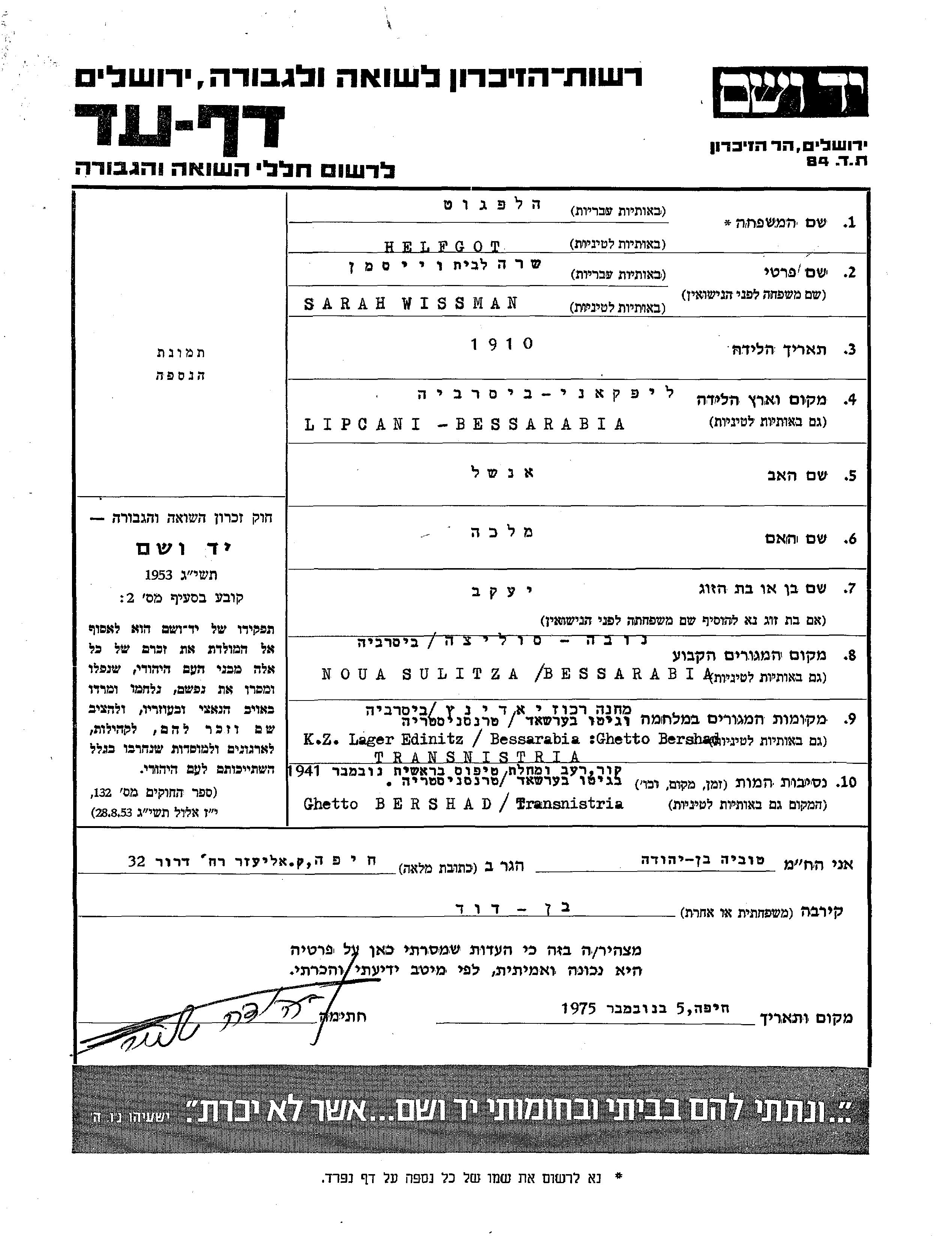 Yad Vashem - Pages of Testimony Names Memorial Collection
