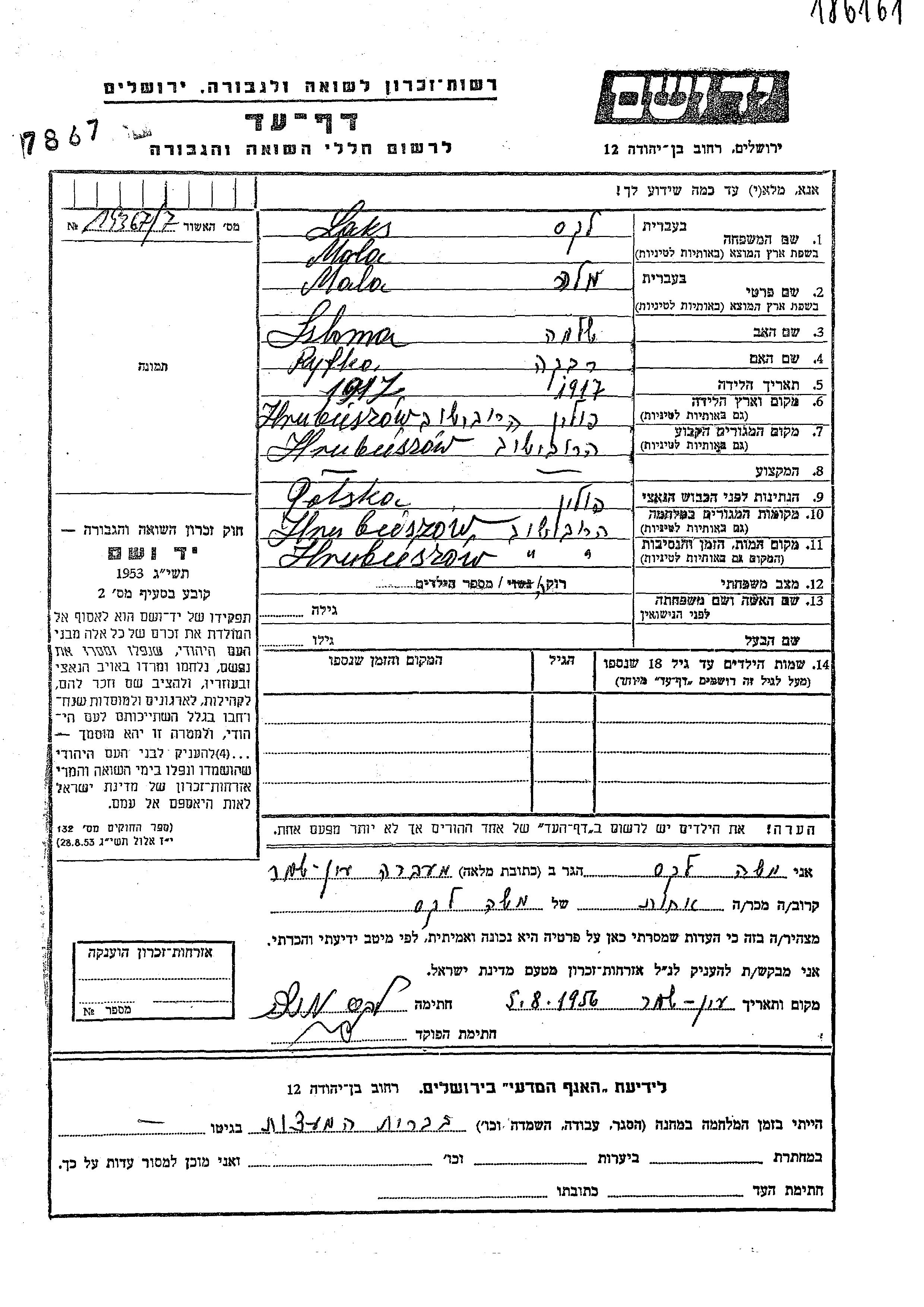 Yad Vashem - Pages of Testimony Names Memorial Collection