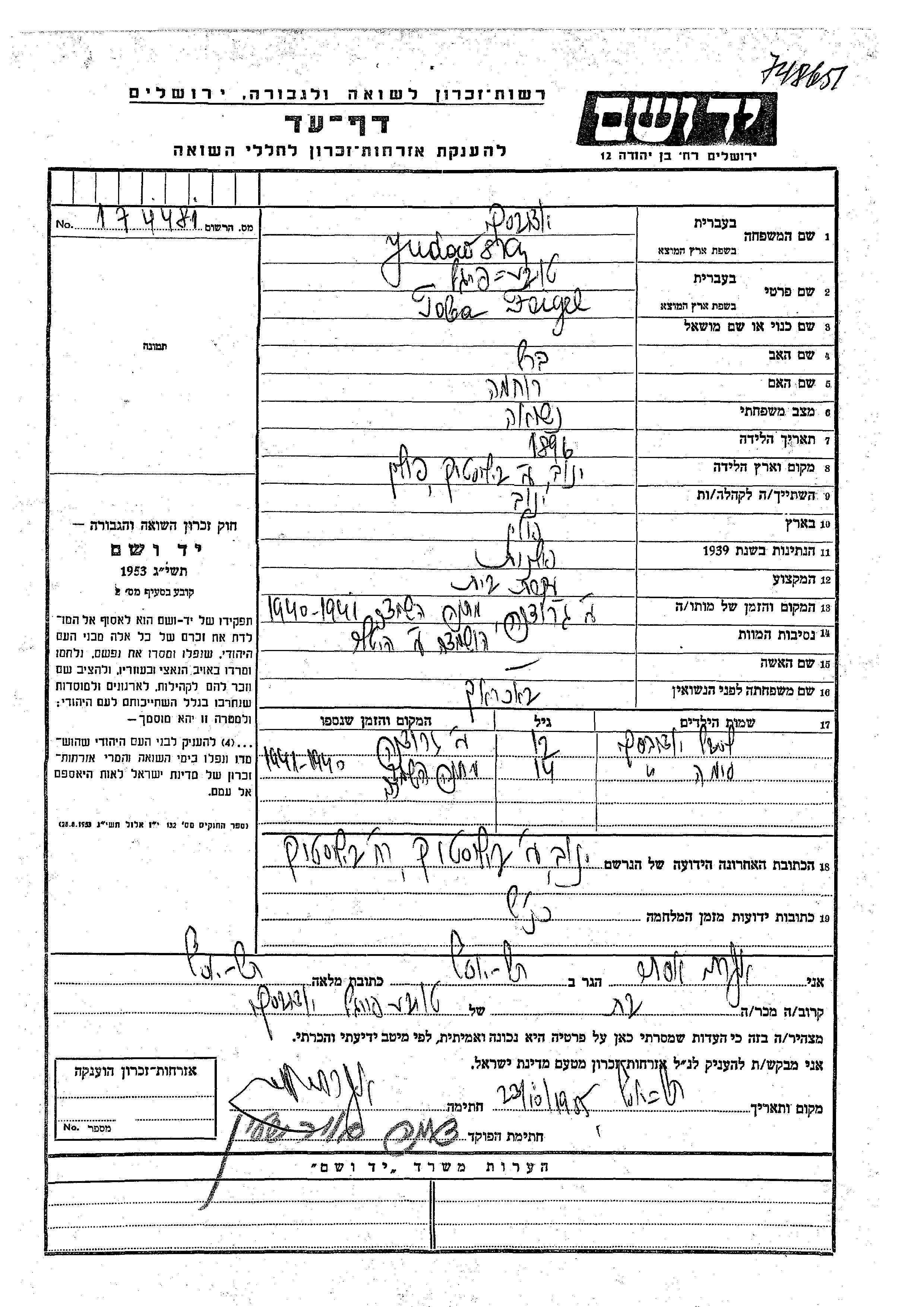 Yad Vashem - Pages of Testimony Names Memorial Collection