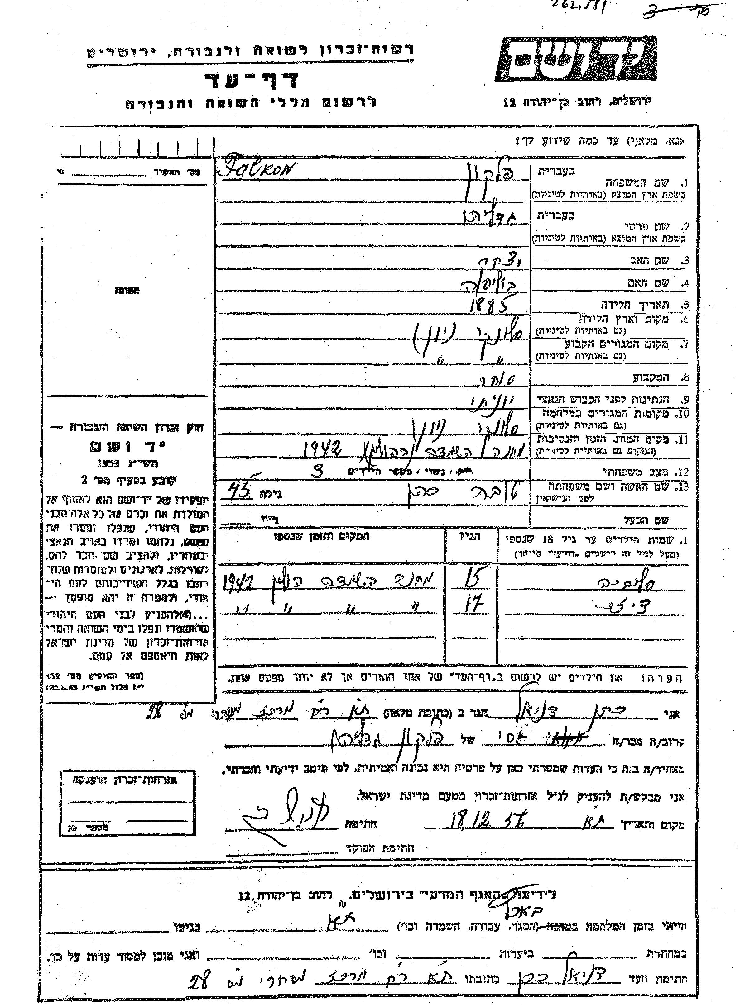 Yad Vashem - Pages of Testimony Names Memorial Collection