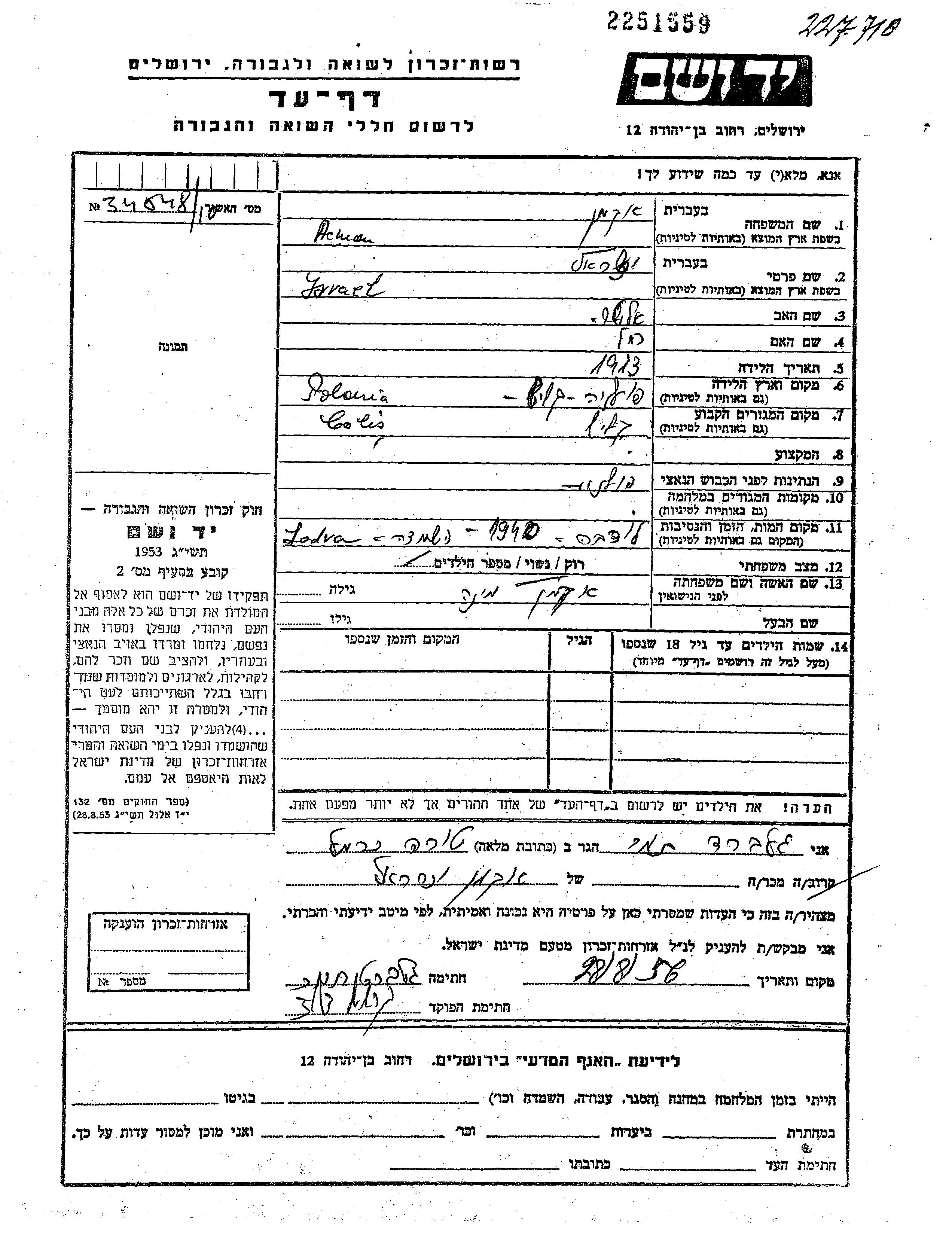 Yad Vashem - Pages of Testimony Names Memorial Collection